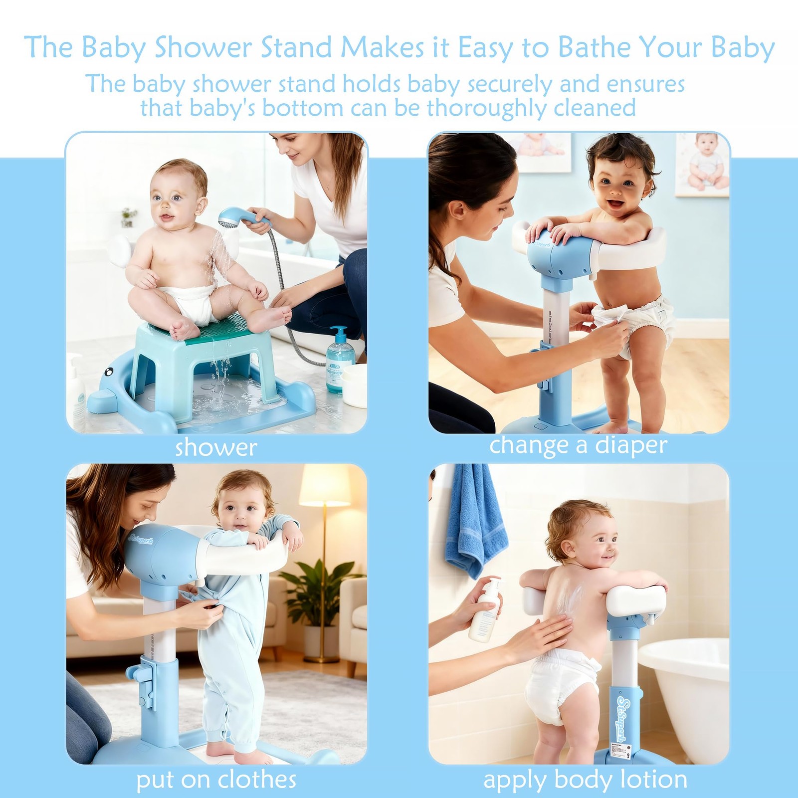 Foldable Baby Shower Stand, Shower Stand with Anti-Slip Base Anti-Pinch Sil...