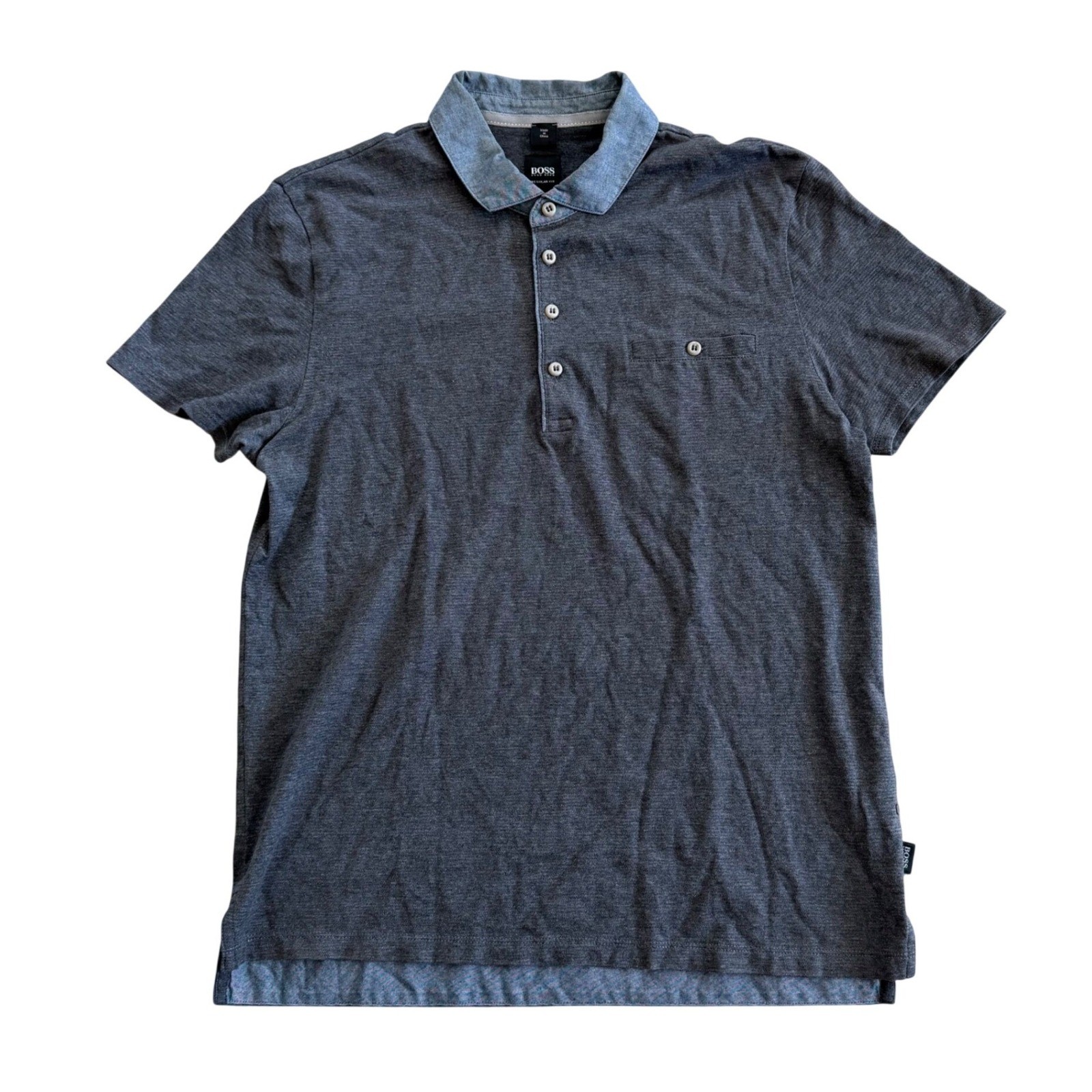 Hugo Boss Mens Gray Cotton Polo Shirt Regular Fit Contrast Collar Size M