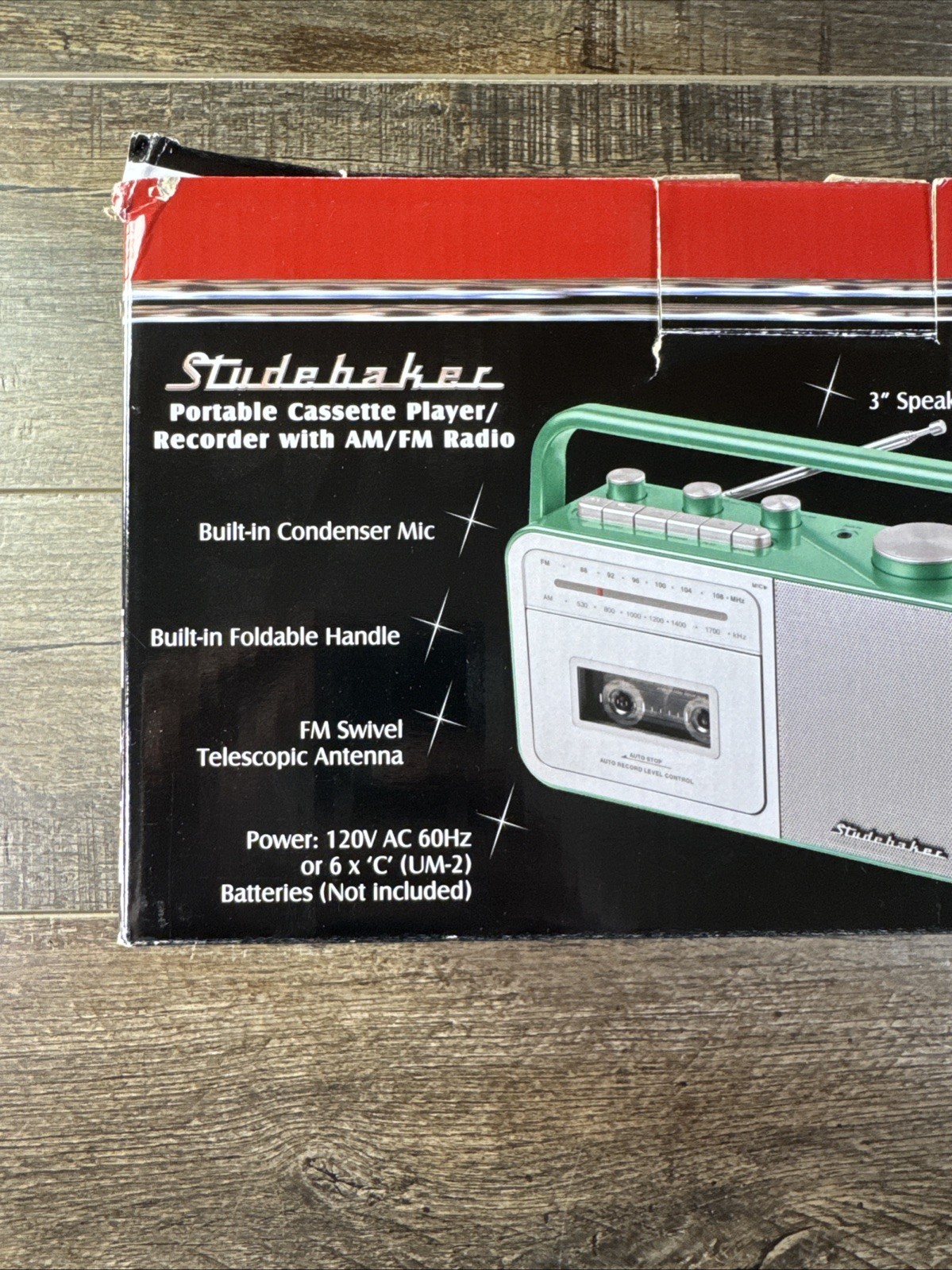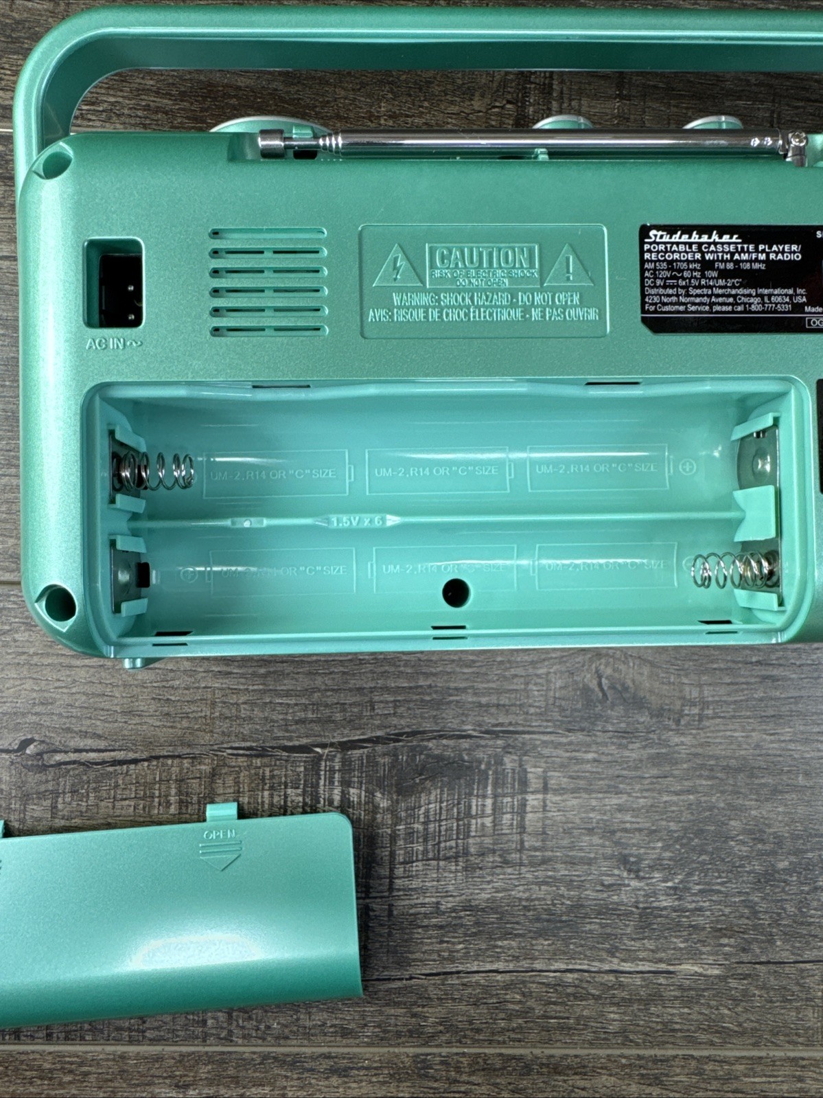 Studebaker Portable Cassette Player/Recorder AM/FM Radio Teal/Silver SB2130TS