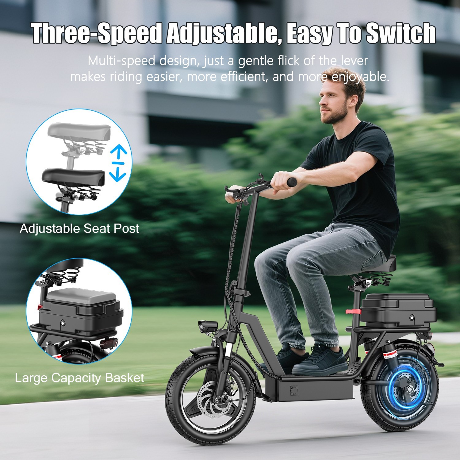 Electric Scooter with Seat Peak 1500W Motor Up to 25MPH 45 Miles 14 for Adults