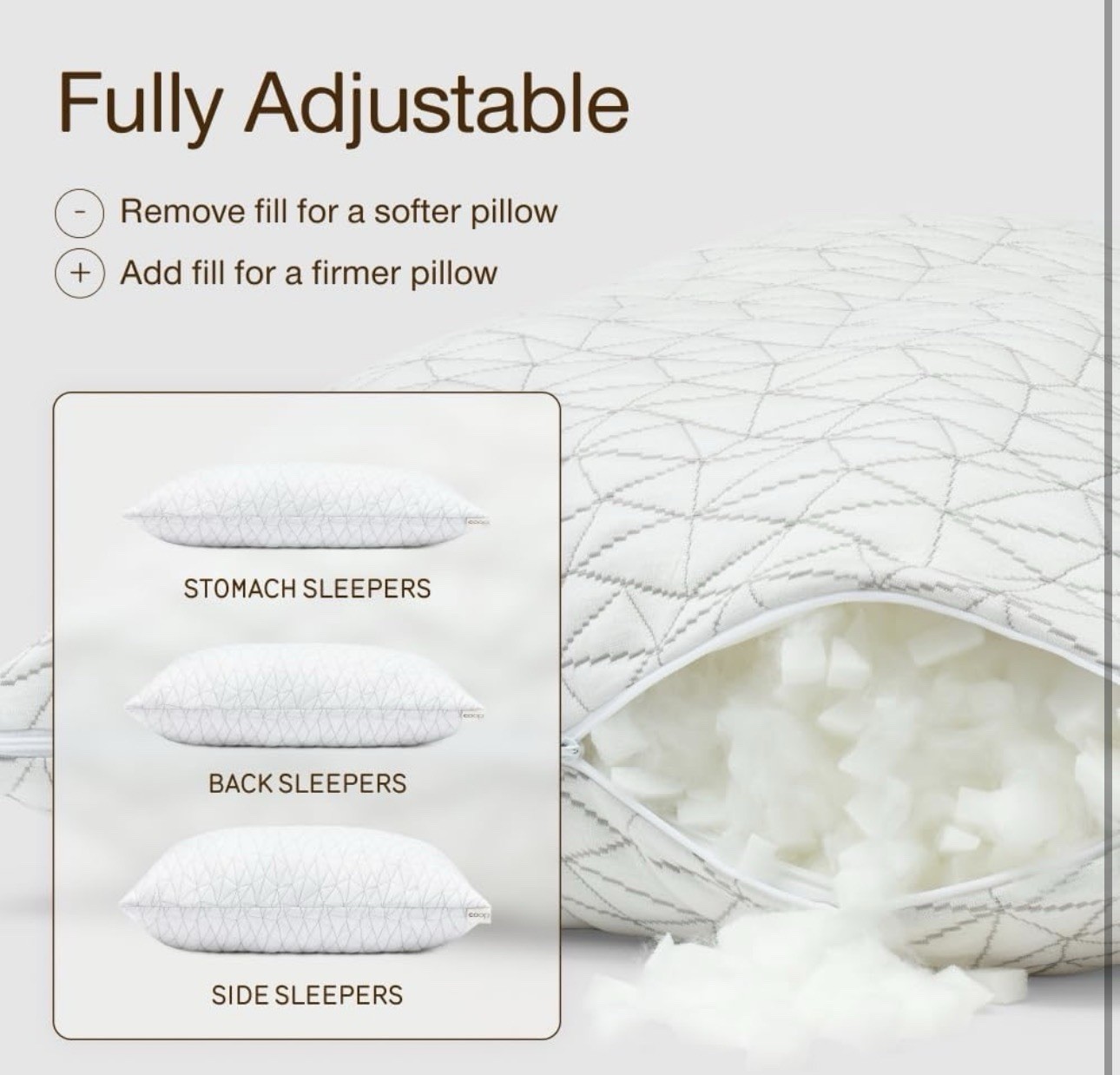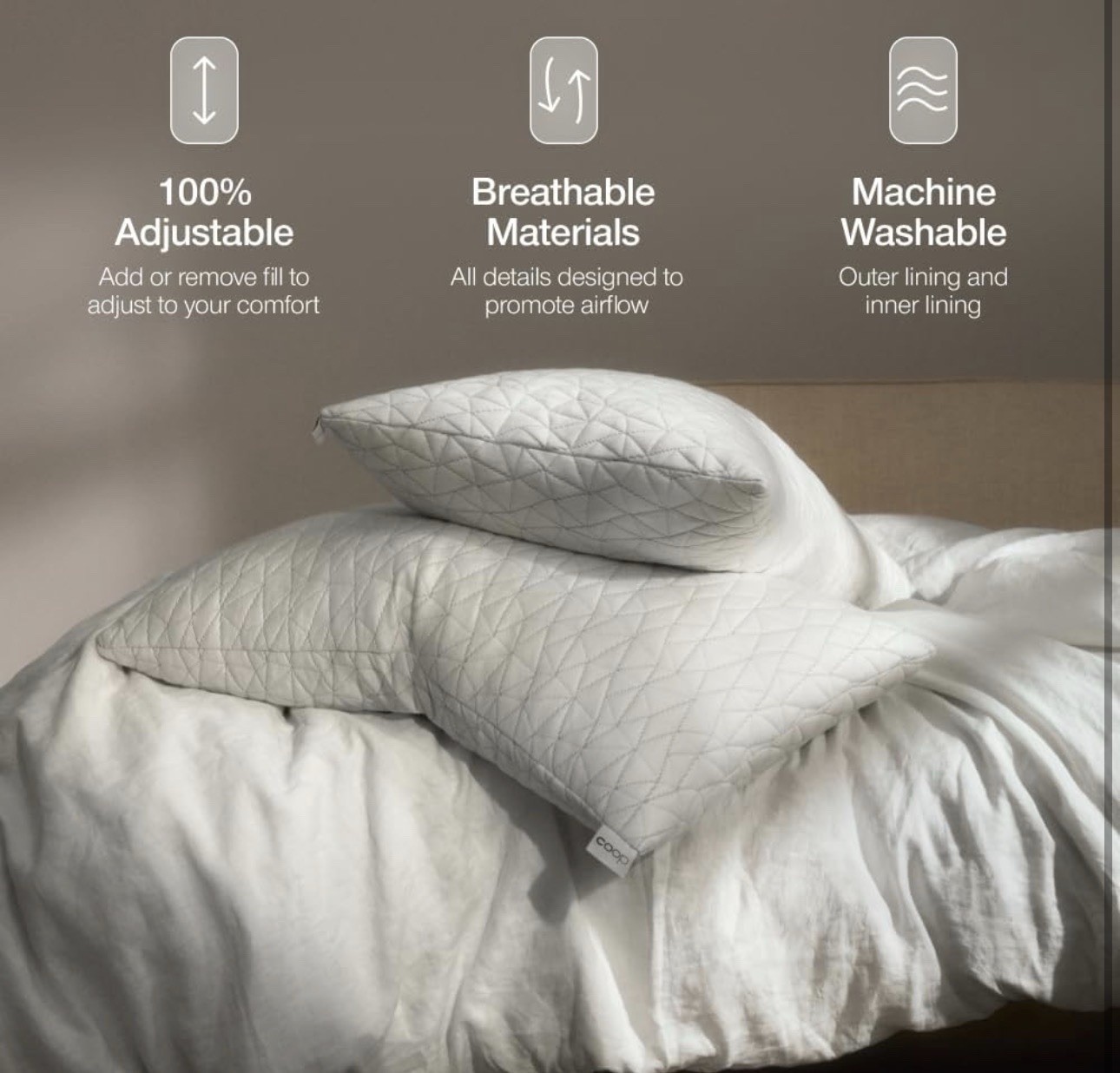 Coop Home Goods Original Adjustable Pillow Queen Size Bed Pillow Memory Foam