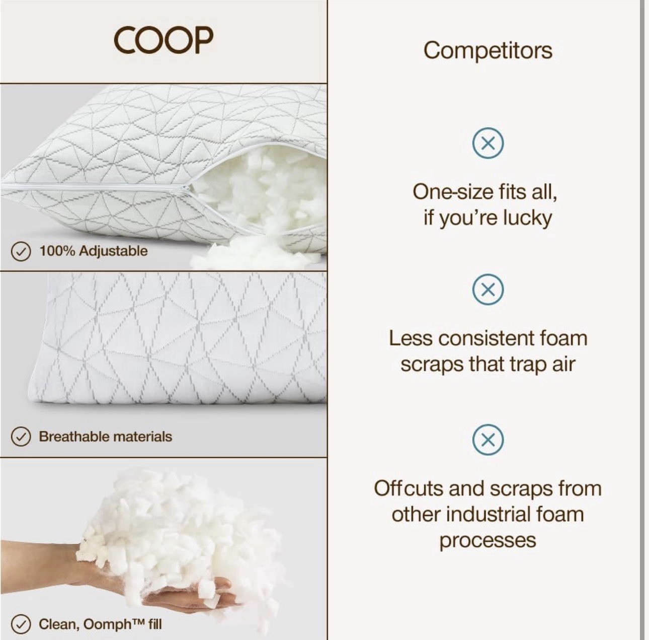 Fill Material: Cross-Cut Memory Foam & Microfiber Blend