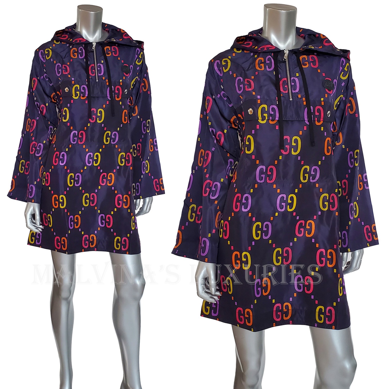 как выглядит GUCCI JACKET JUMBO GG PRINTED BLUE ANORAK SHORT HOODED COAT 2,650 sz IT 40 US 4 фото