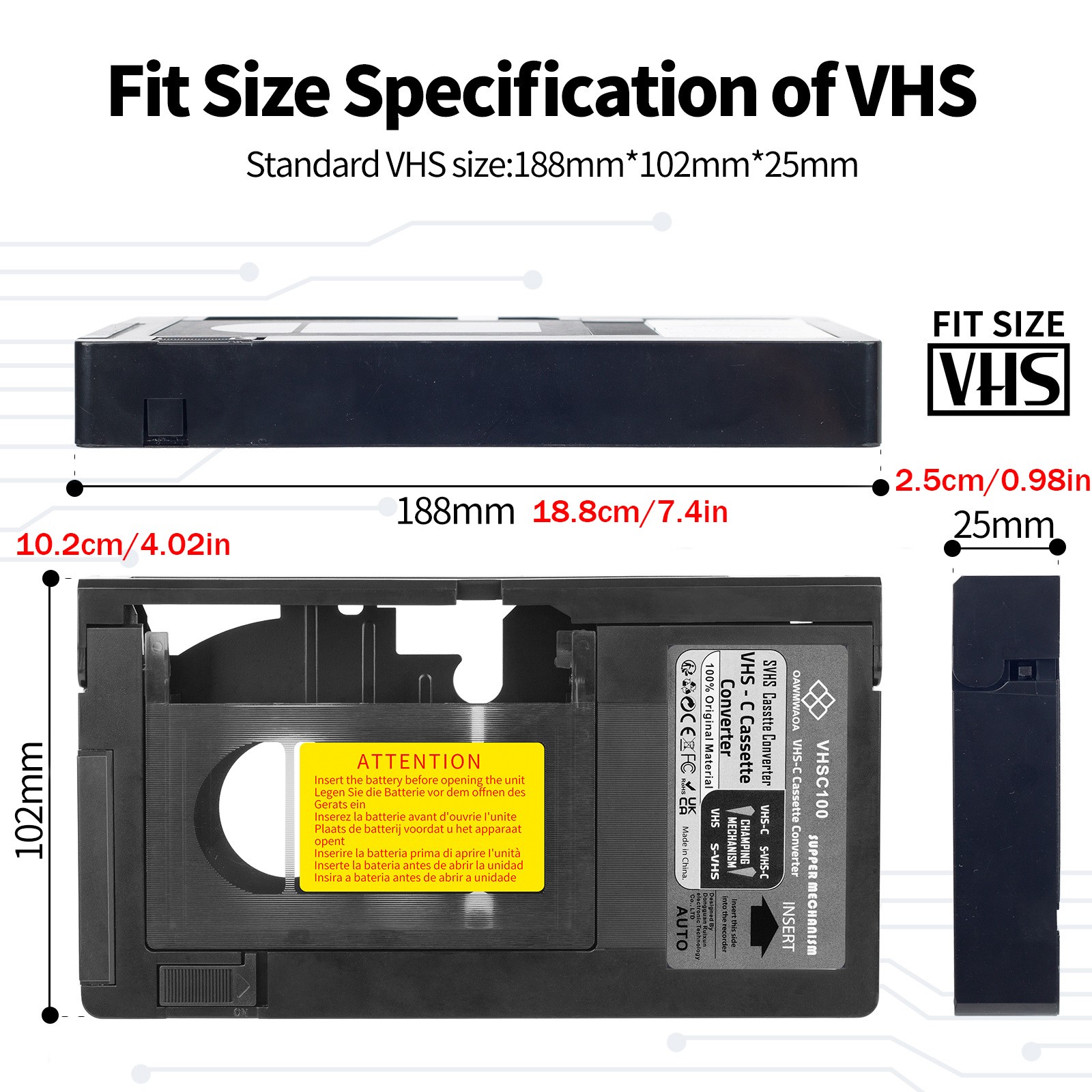как выглядит VHS-C Cassette Video Adapter for VHS-C SVHS Camcorders RCA Motorized фото