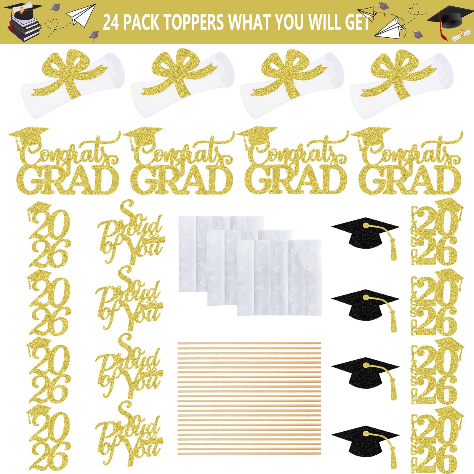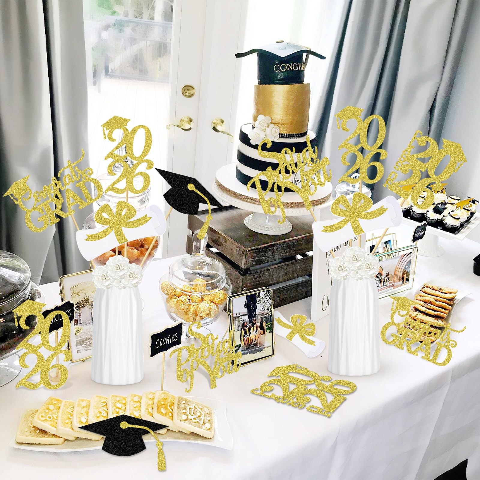 24Pcs 2026 Graduation Centerpieces Sticks Gold, Graduation Party Centerpieces...