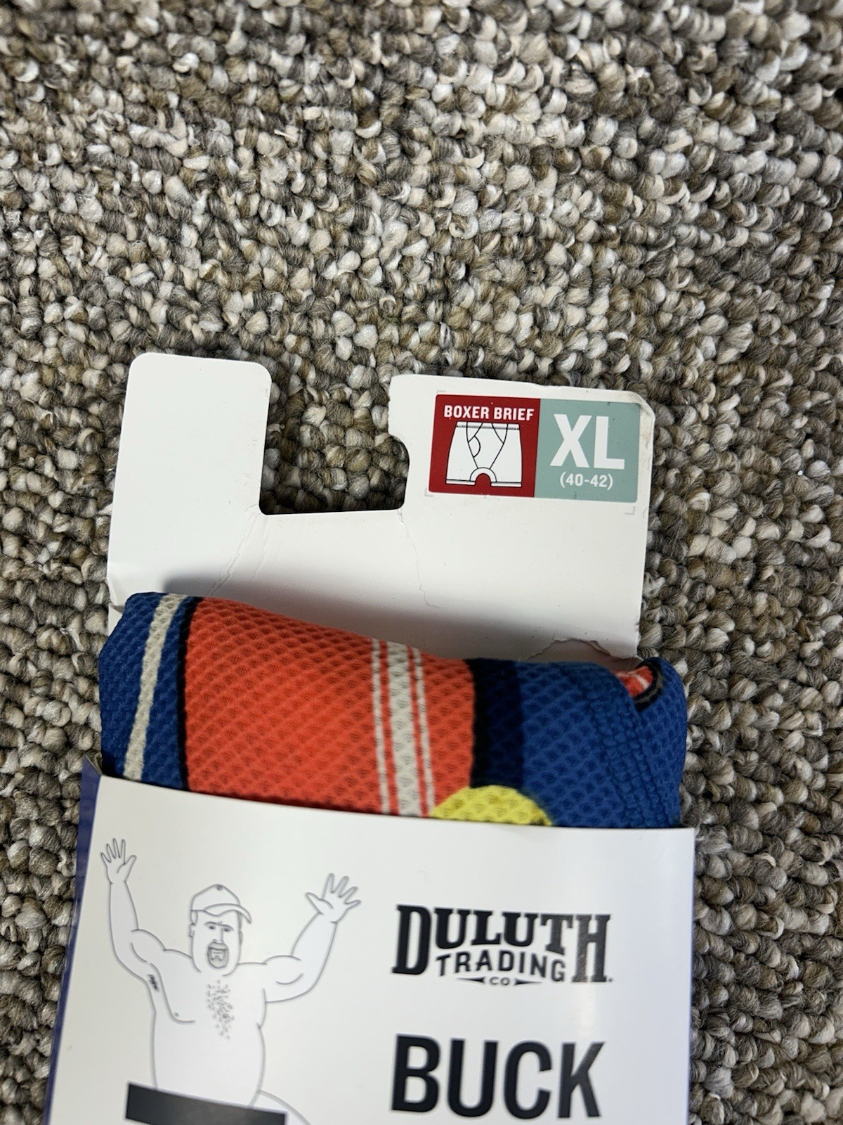 Duluth Men's Buck Naked Pattern Boxer Briefs Sz XL Blue Red New