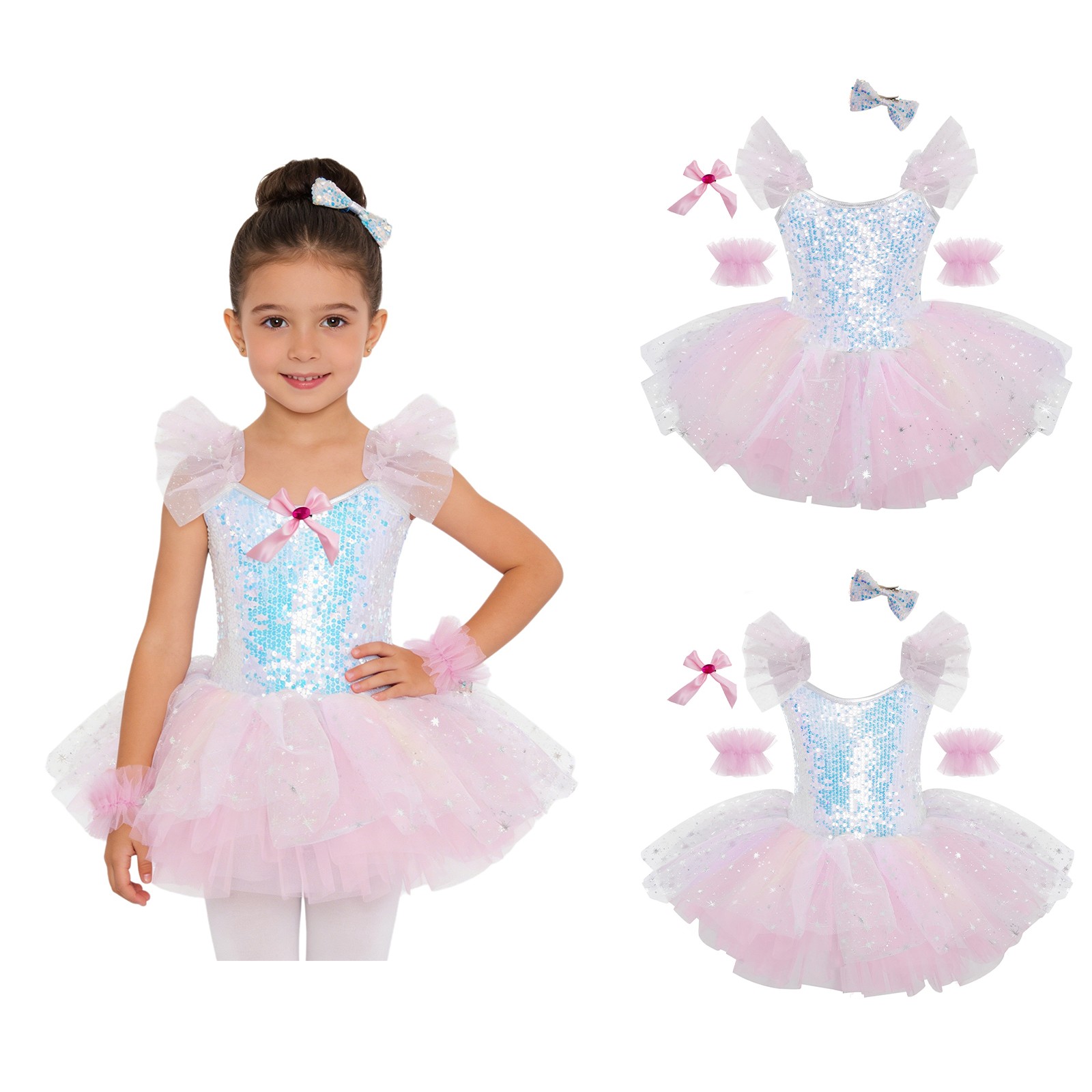 как выглядит Kids Girls Dancewear Performance Costume Rave Dress Stage Ruched Dress Up Mesh фото