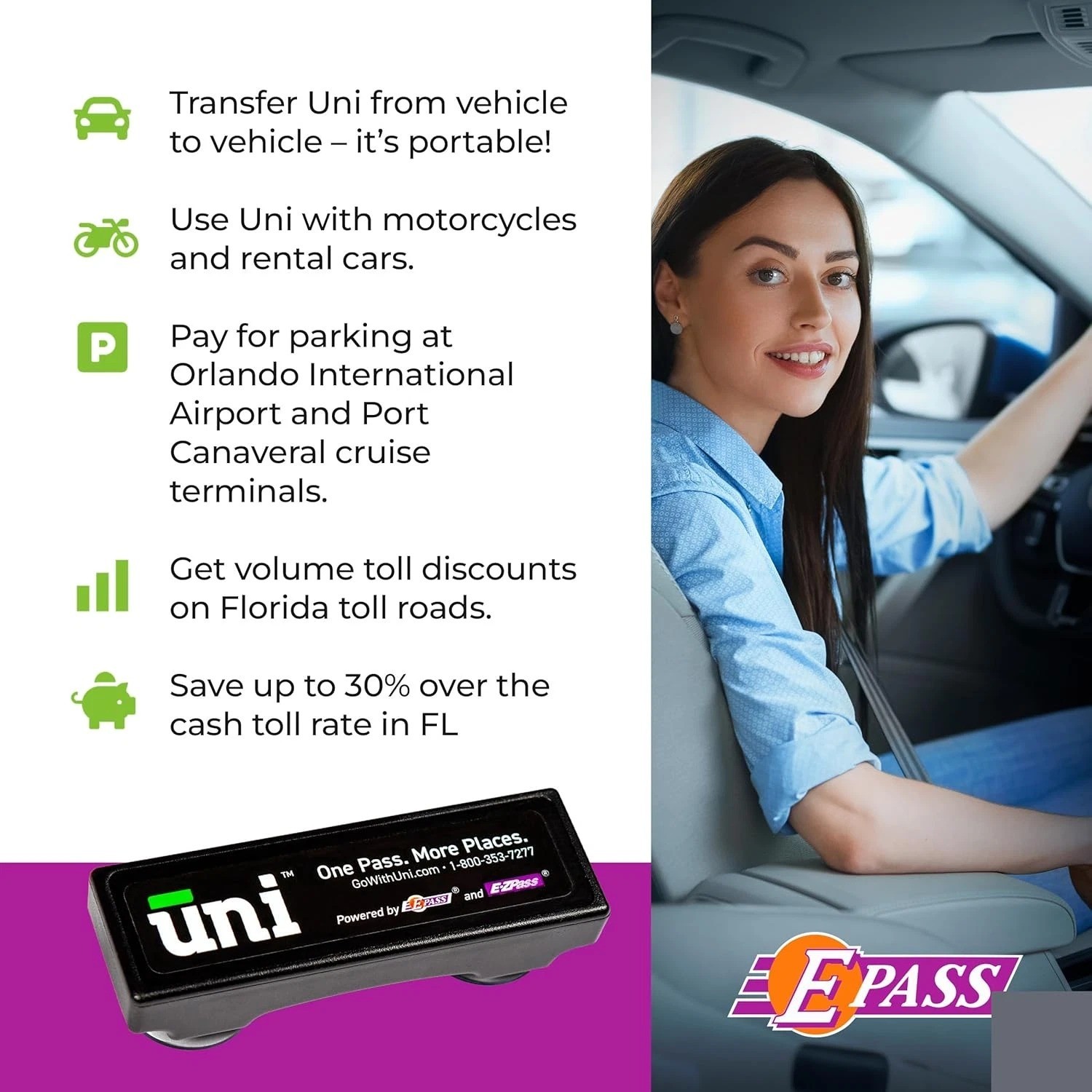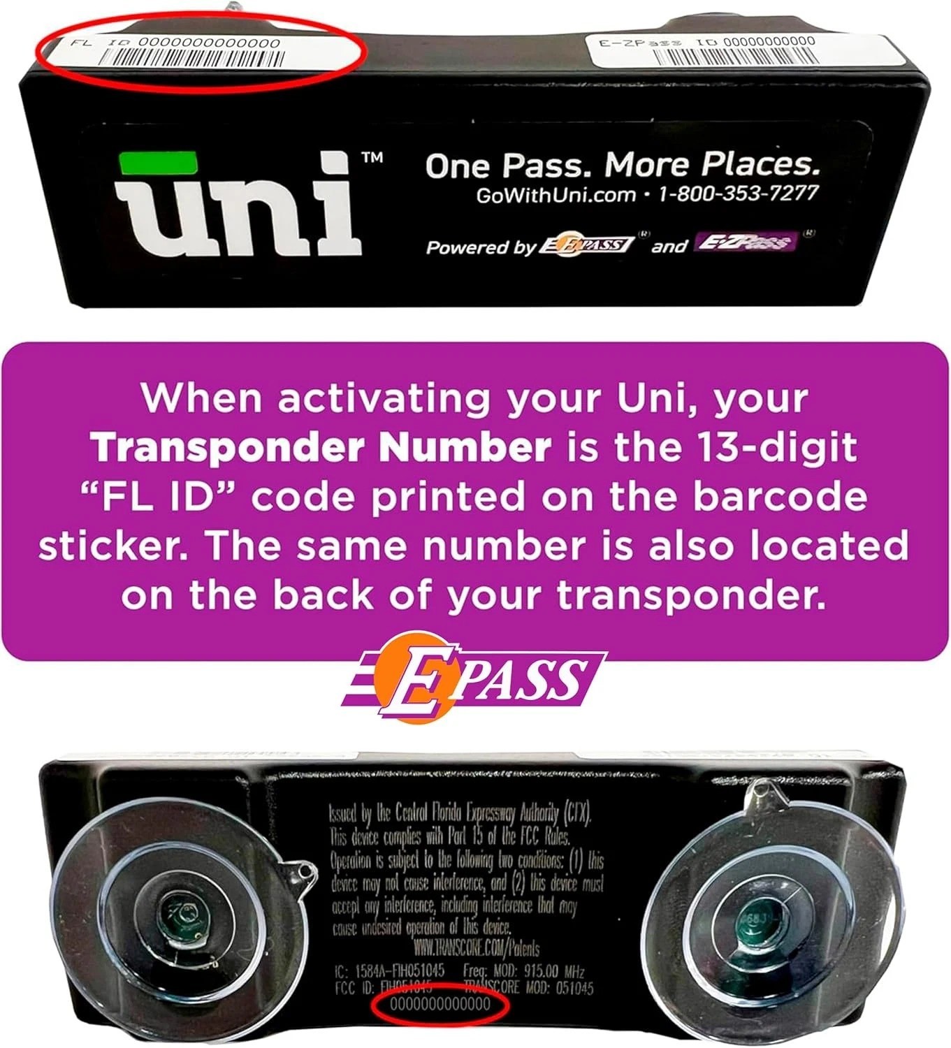 Uni EZ-Pass Transponder 19-State Portable Toll Pass Activates in 24 Hrs. Black