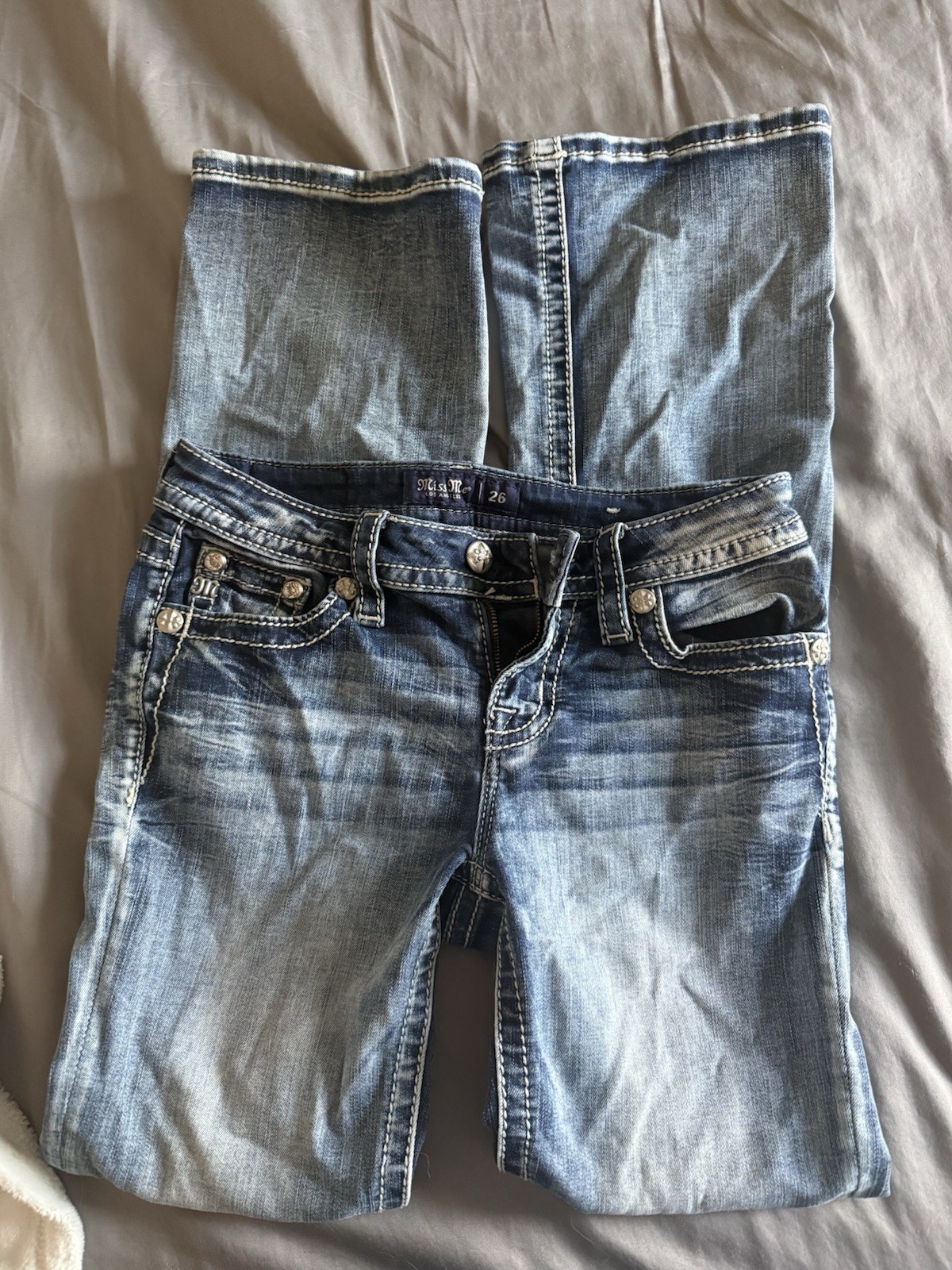 как выглядит Miss Me Womens Blue Bootcut Jeans Embroidered Embellished Western Denim фото