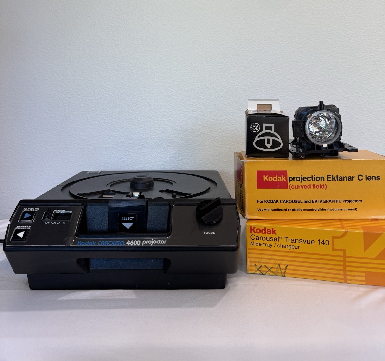 Kodak Carousel 4600 Slide Projector w/ Tray Lens Extra Bulb - Tested Working