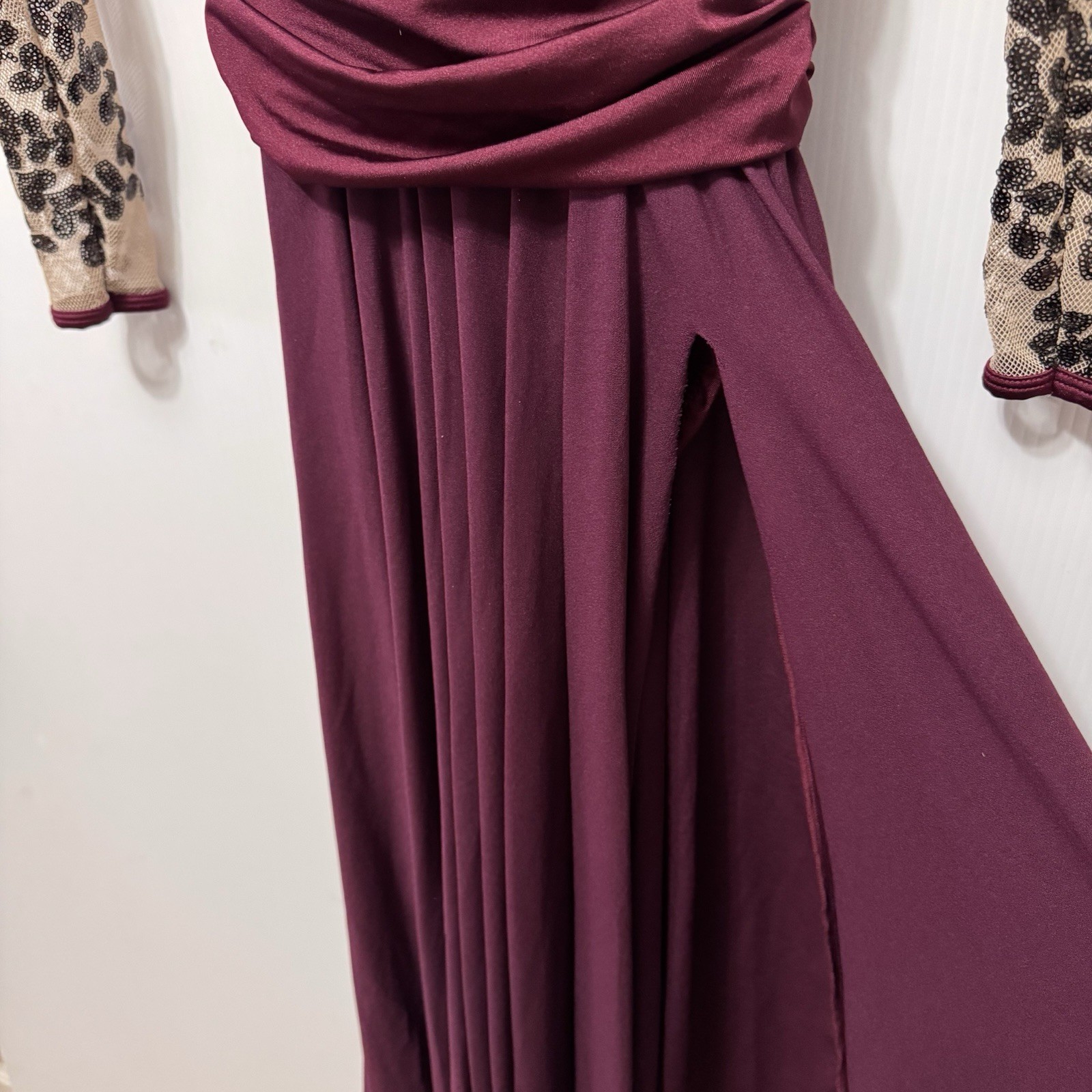 Curtain Call Dance Costume Burgandy And Black Sequin Mesh Top Child s Large