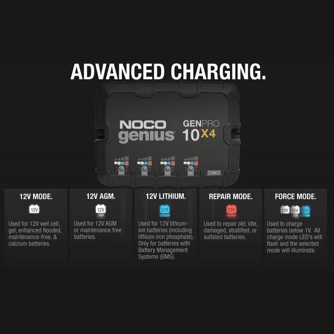 NOCO Genius GENPRO10X4 4-Bank 40A 10A/Bank 12V Onboard Marine Battery Charger