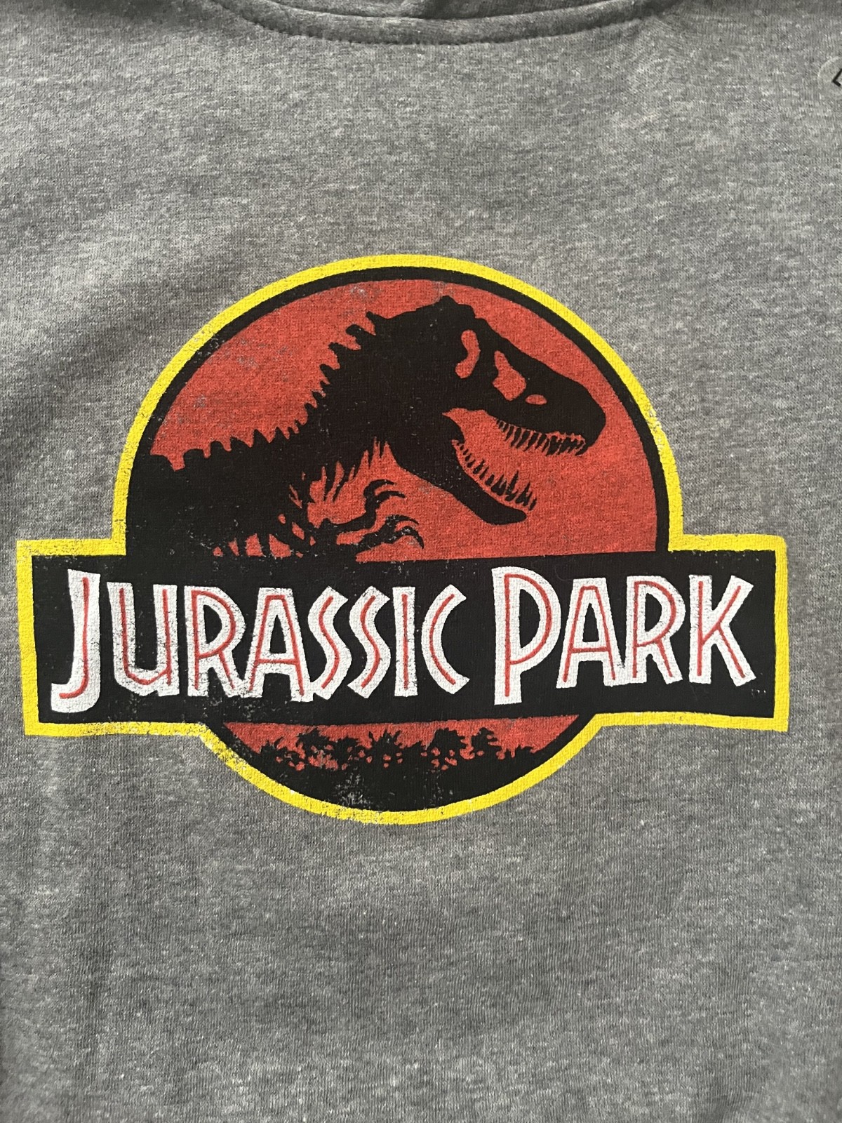 Jurassic Park Hoodie Youth Large Grey Pullover Sweatshirt Side Pockets T-Rex NEW