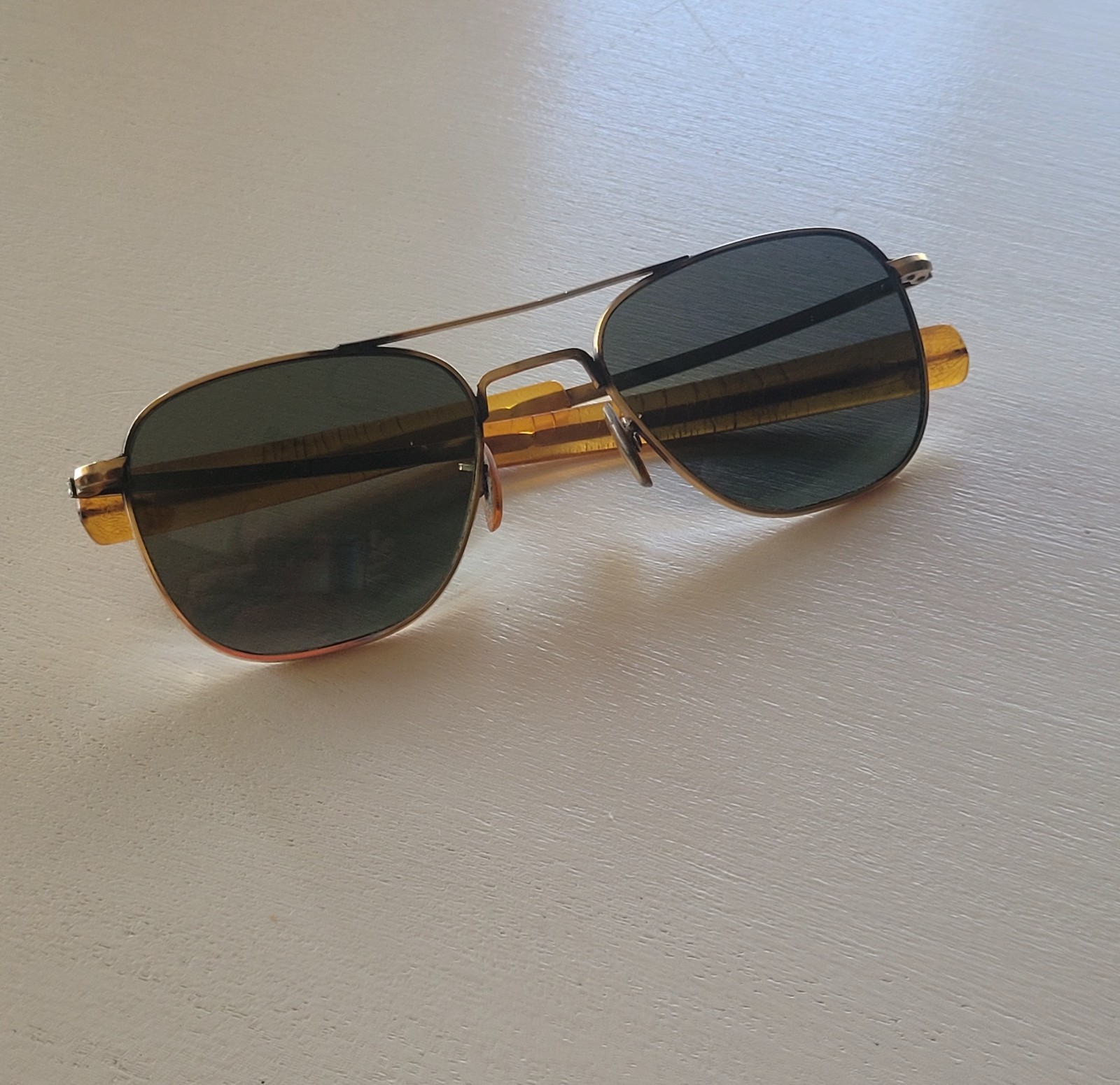 как выглядит Vintage American Optical AO 1/10 12KGF 5 1/2 Pilot Aviator Sunglasses фото