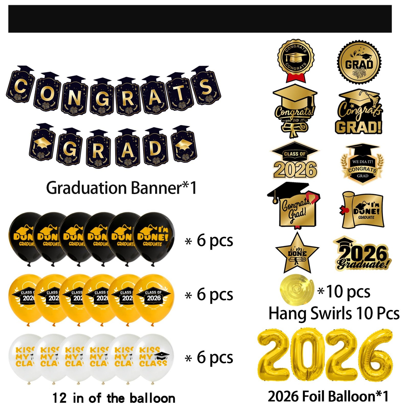 как выглядит Graduation Party Decorations 2026 Black Gold Grad Banner, Class of Backdrop, ... фото