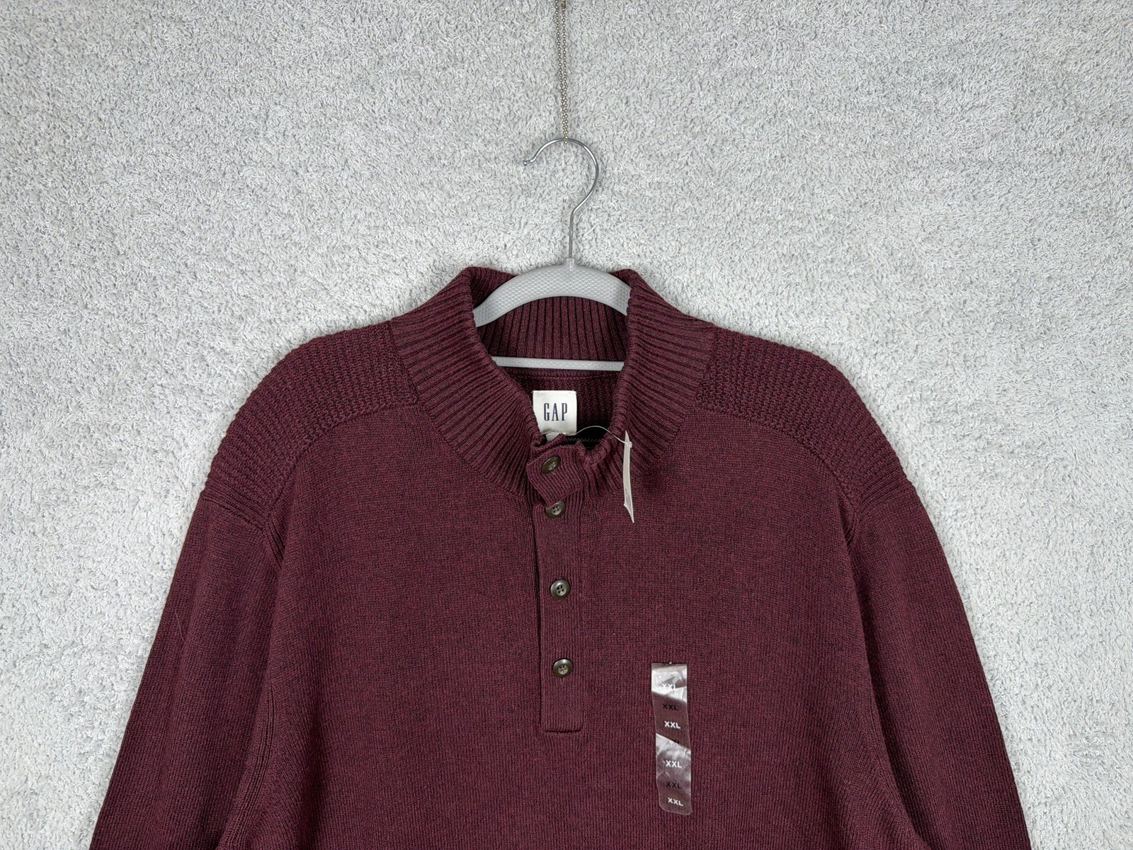 как выглядит NWT Gap Men s 2XL Burgundy Henley Sweater Mock Neck Button Pullover фото