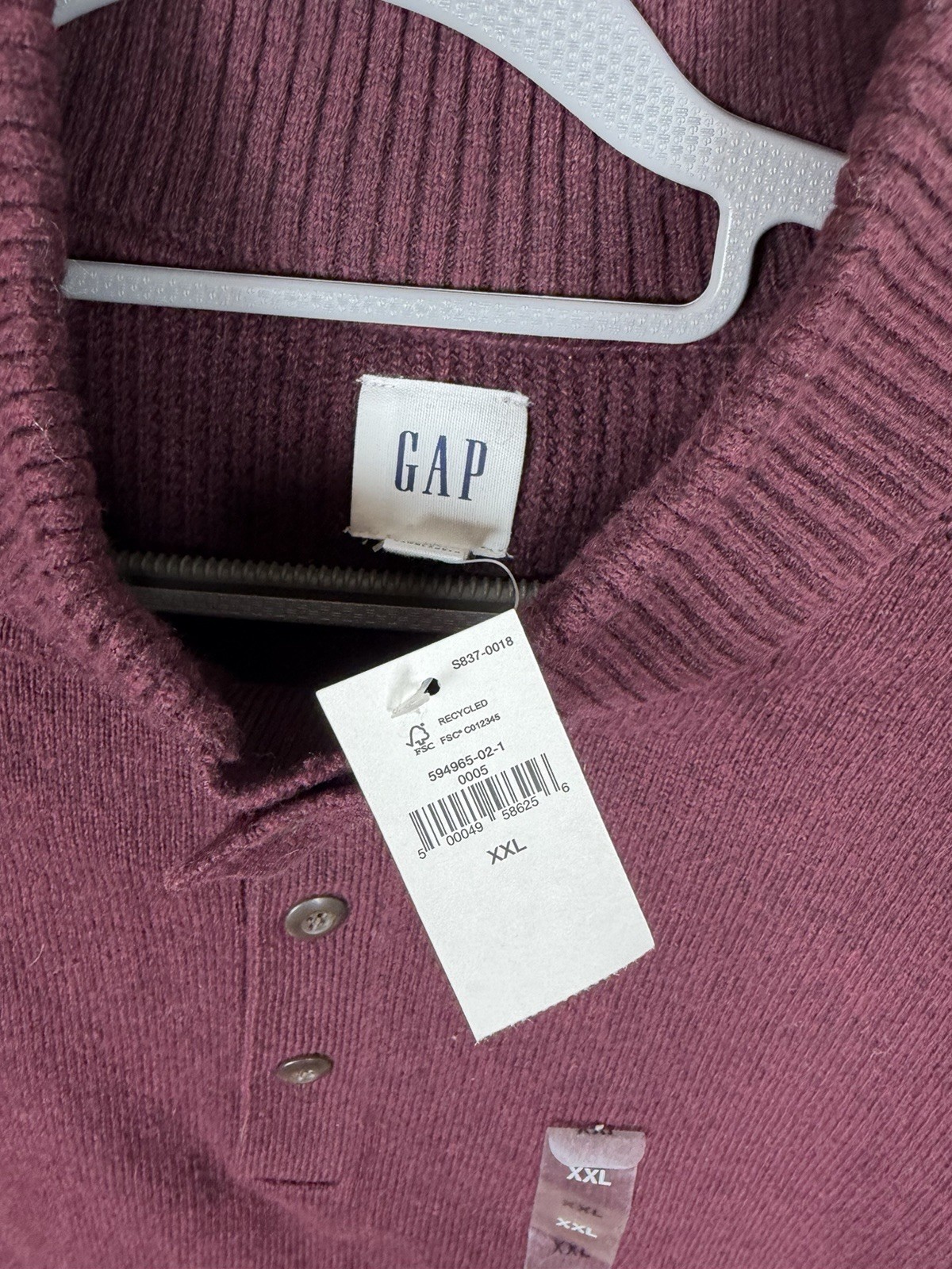 NWT Gap Men s 2XL Burgundy Henley Sweater Mock Neck Button Pullover