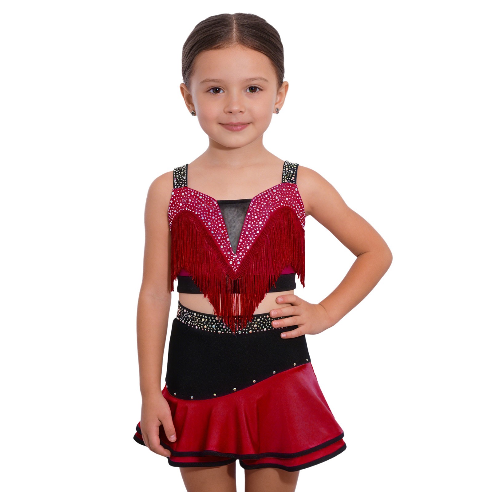 Girls Latin Dance Sparkly Ballroom Salsa Professional Rhinestone Performance