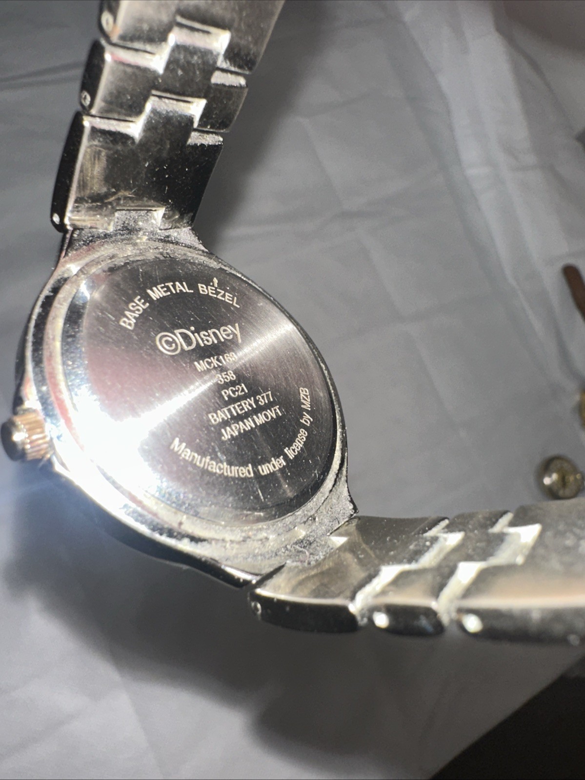 как выглядит DISNEY MICKEY MOUSE WATCH METAL BAND JAPAN MOVEMENT MCK168 SILVER TONE MZ BERGER фото