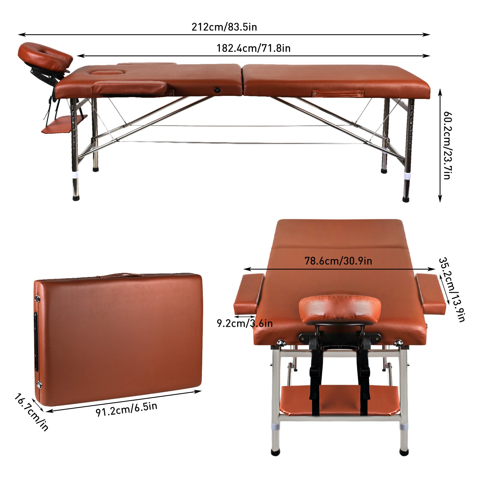 Massage Table Massage Bed Spa Bed 84 Long Portable 2 folding W Carry Case Brown