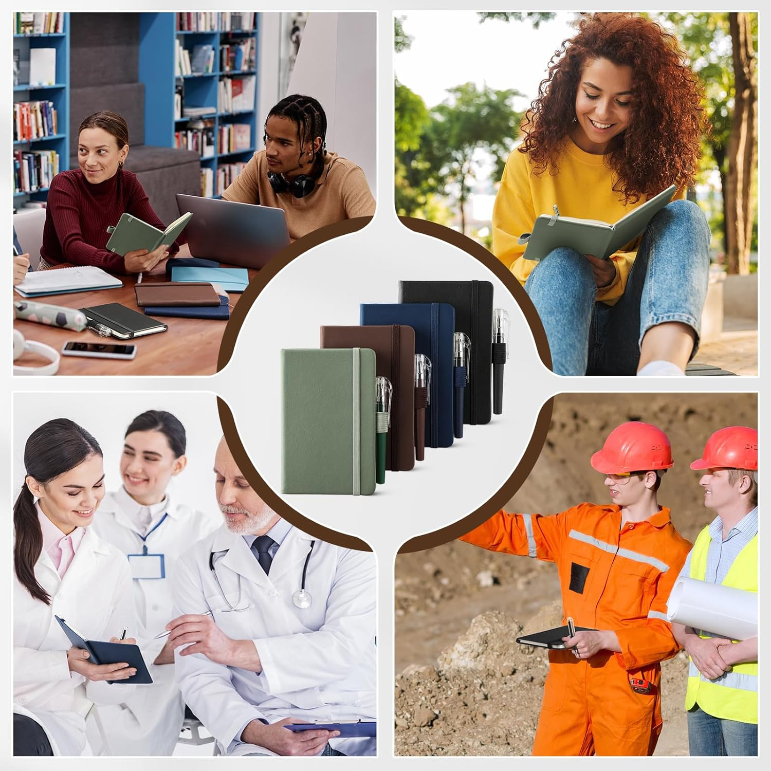 как выглядит 4 Pack Small Notebook Pocket Notebook, A6 Mini Leather Hardcover Journal, 3.7" X фото