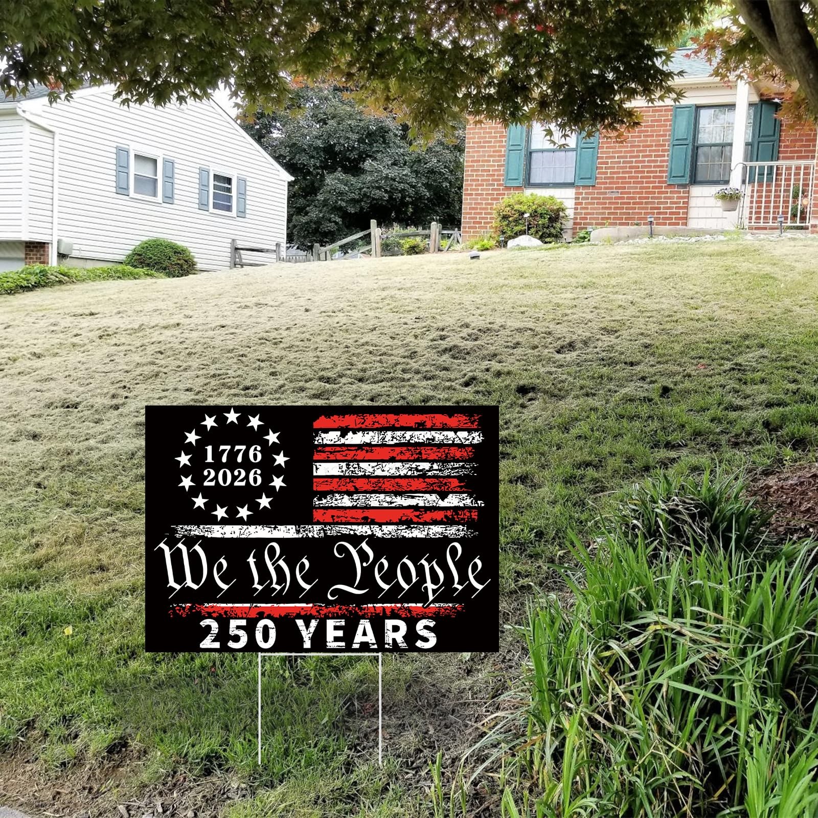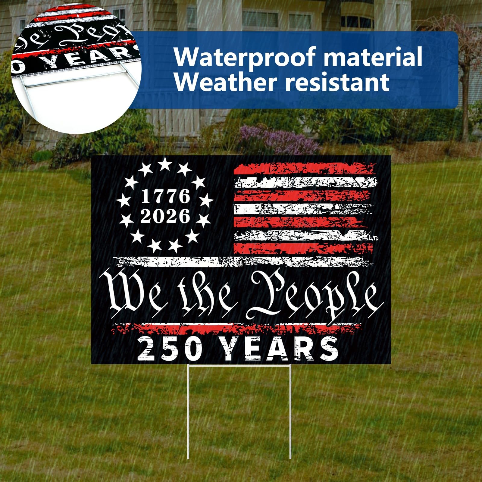 250th Anniversary Yard Sign 12 x 17 with H Stakes America Flag 17762026 250...