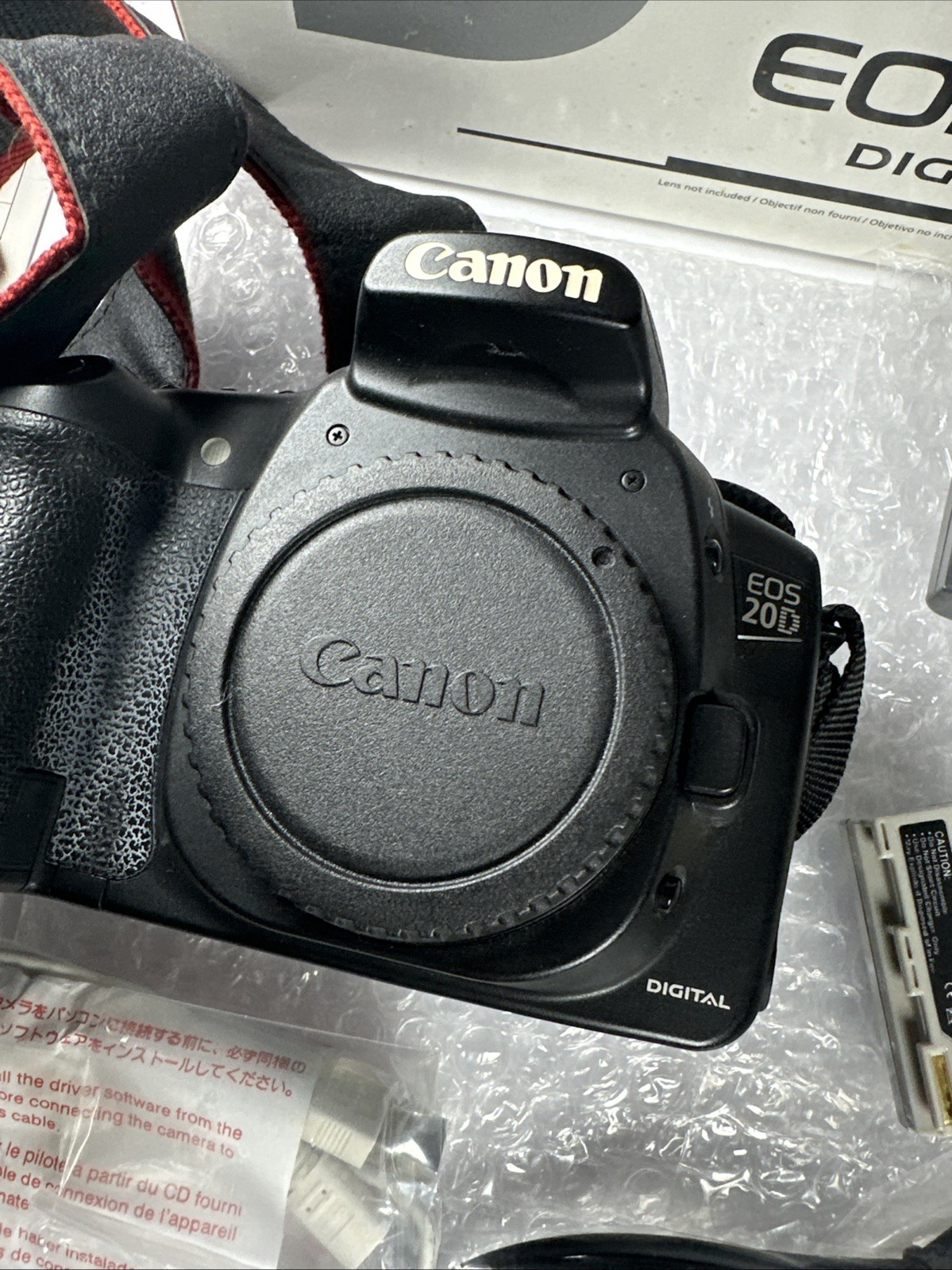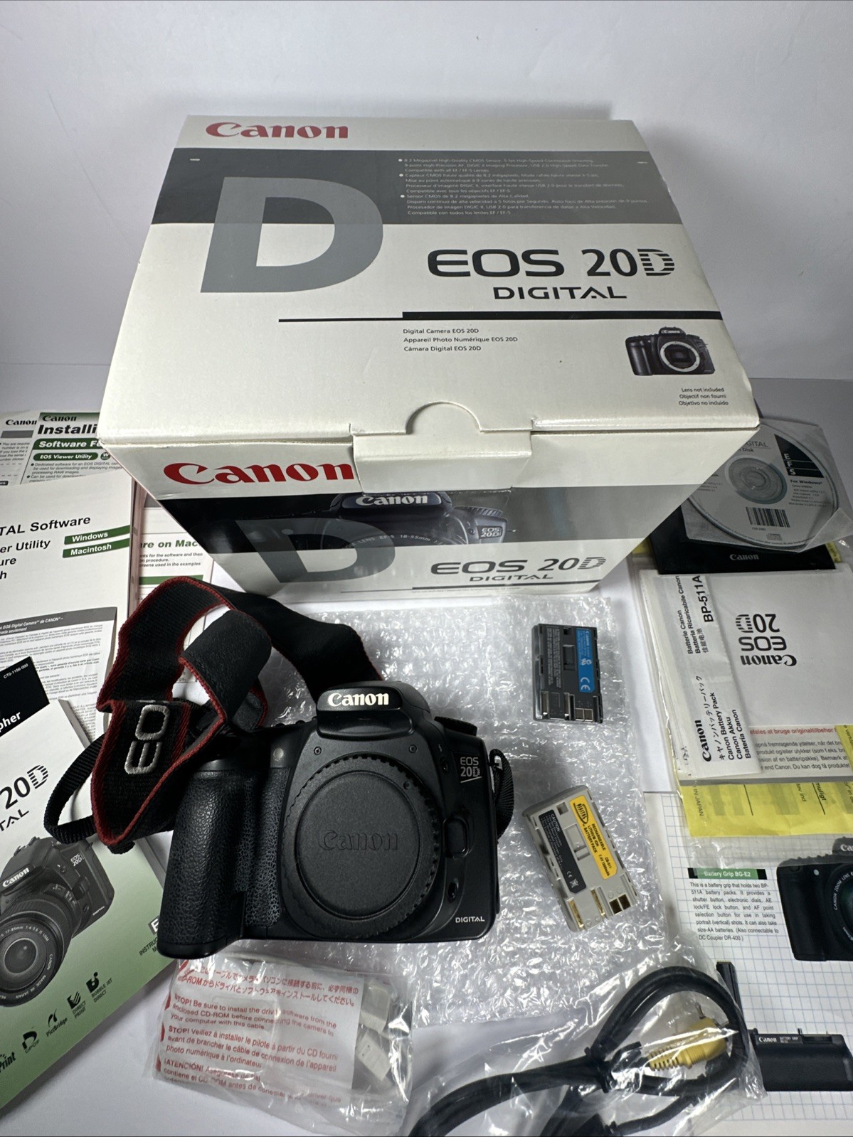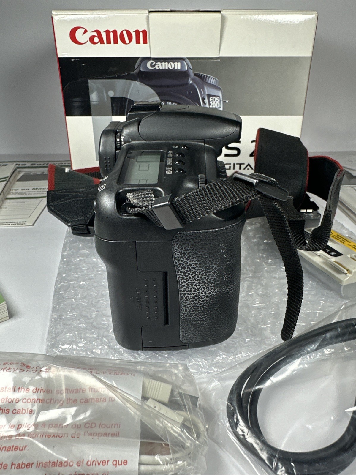 Canon EOS 20D 8.2MP DSLR Camera Body w/ Box Strap 2 Batteries Manuals Cords