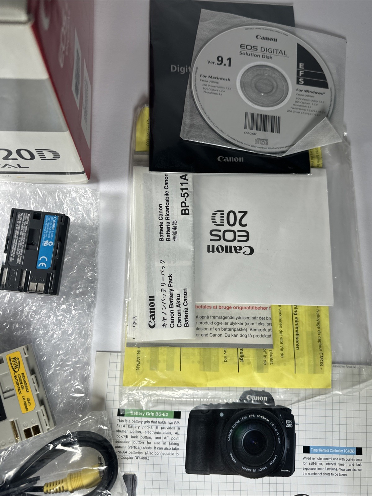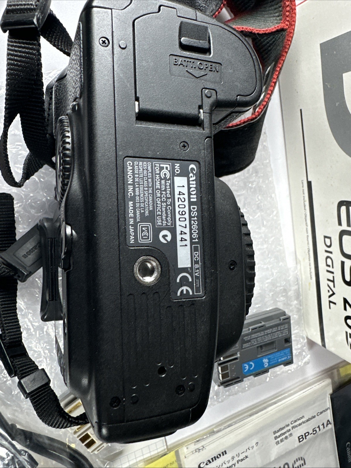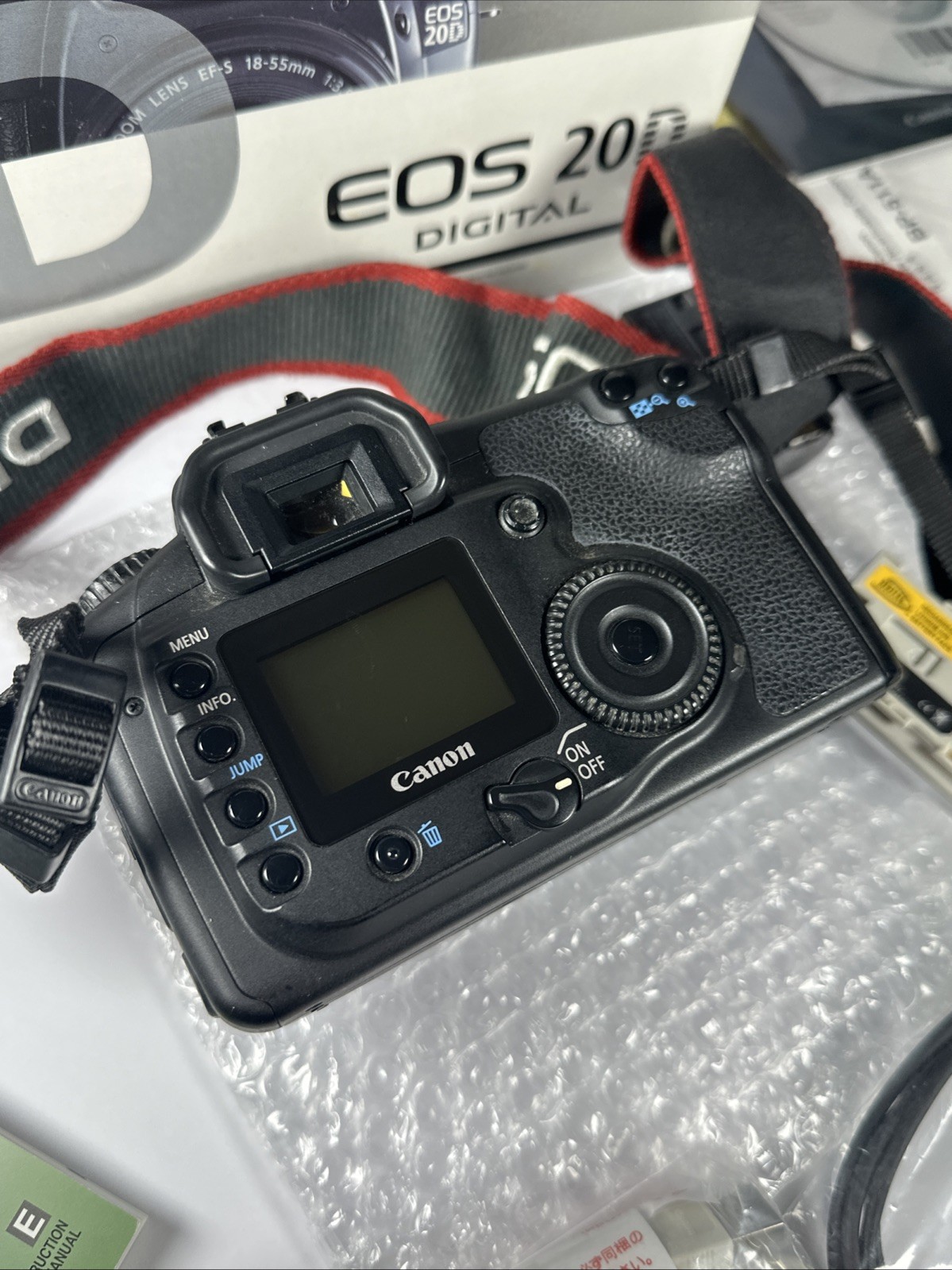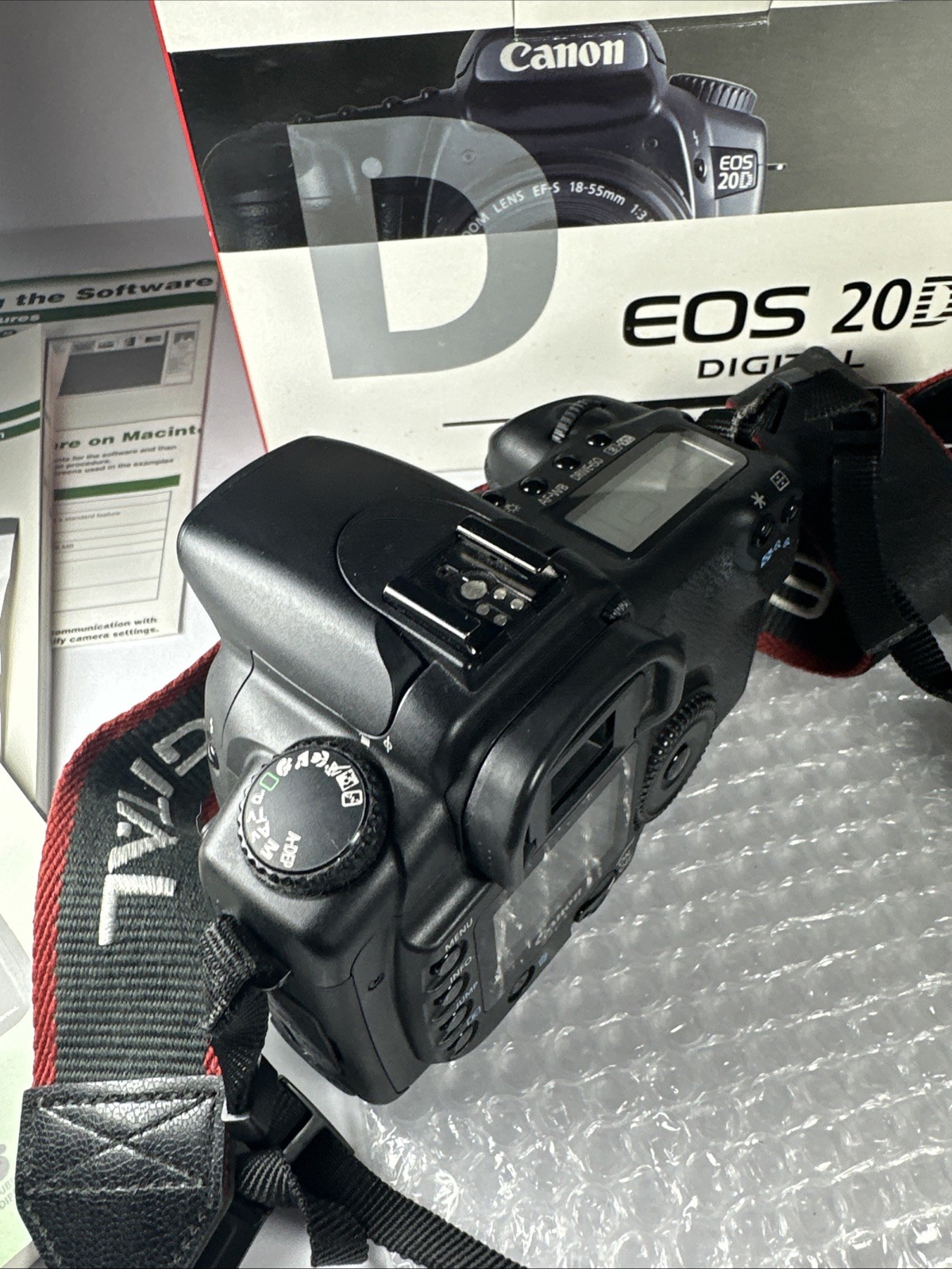 Canon EOS 20D 8.2MP DSLR Camera Body w/ Box Strap 2 Batteries Manuals Cords