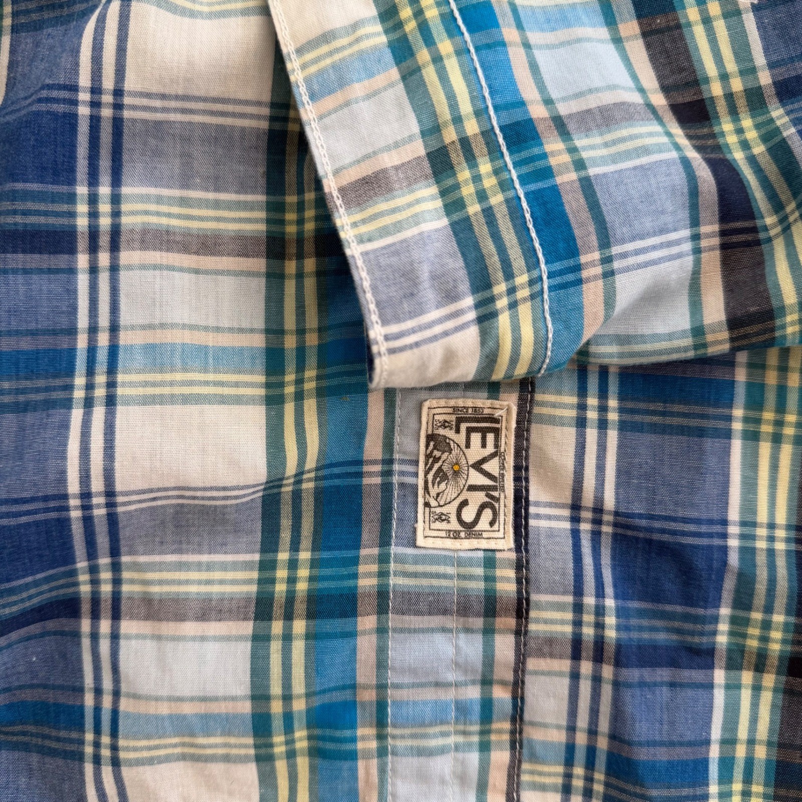 как выглядит Levis Mens Blue Yellow Plaid Button Up Shirt Long Sleeve Casual Size M фото