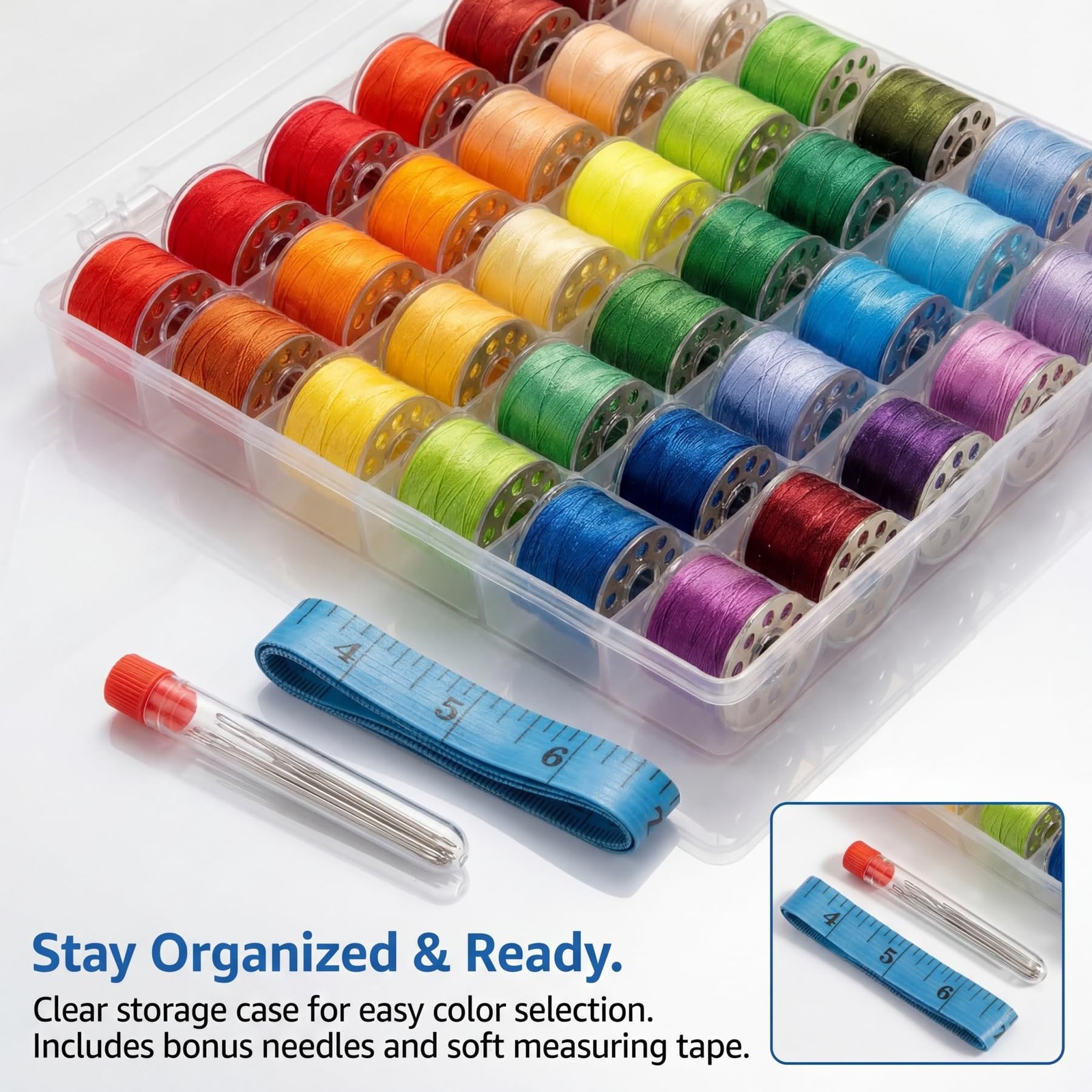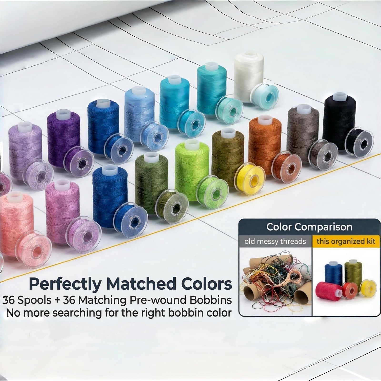 Sewing Thread Kit 72 Pcs 36 Colors Polyester 400 Yards Bobbins Machine Quilting