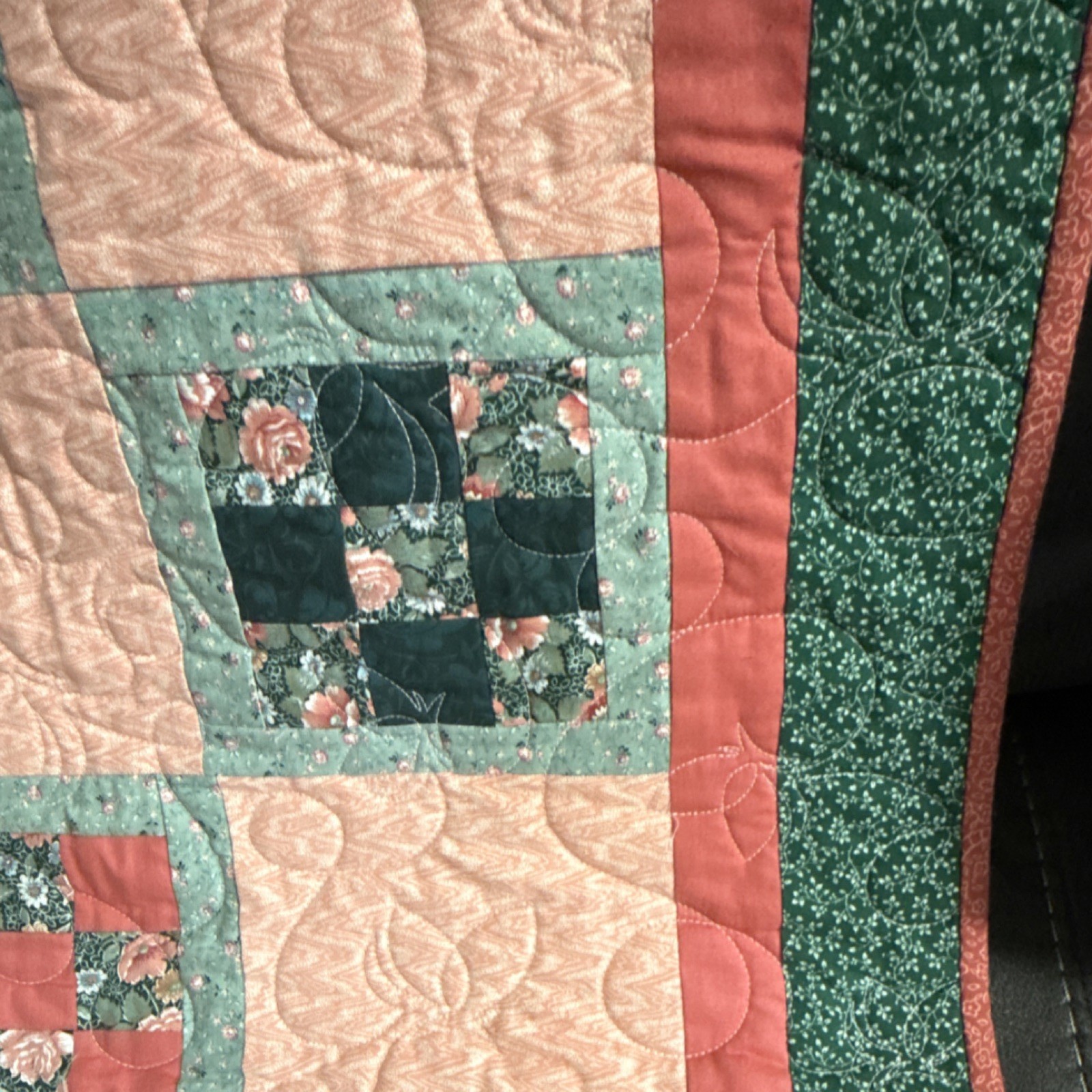 Handmade Patchwork Floral Throw Quilt Pink Cotton. 63 x50