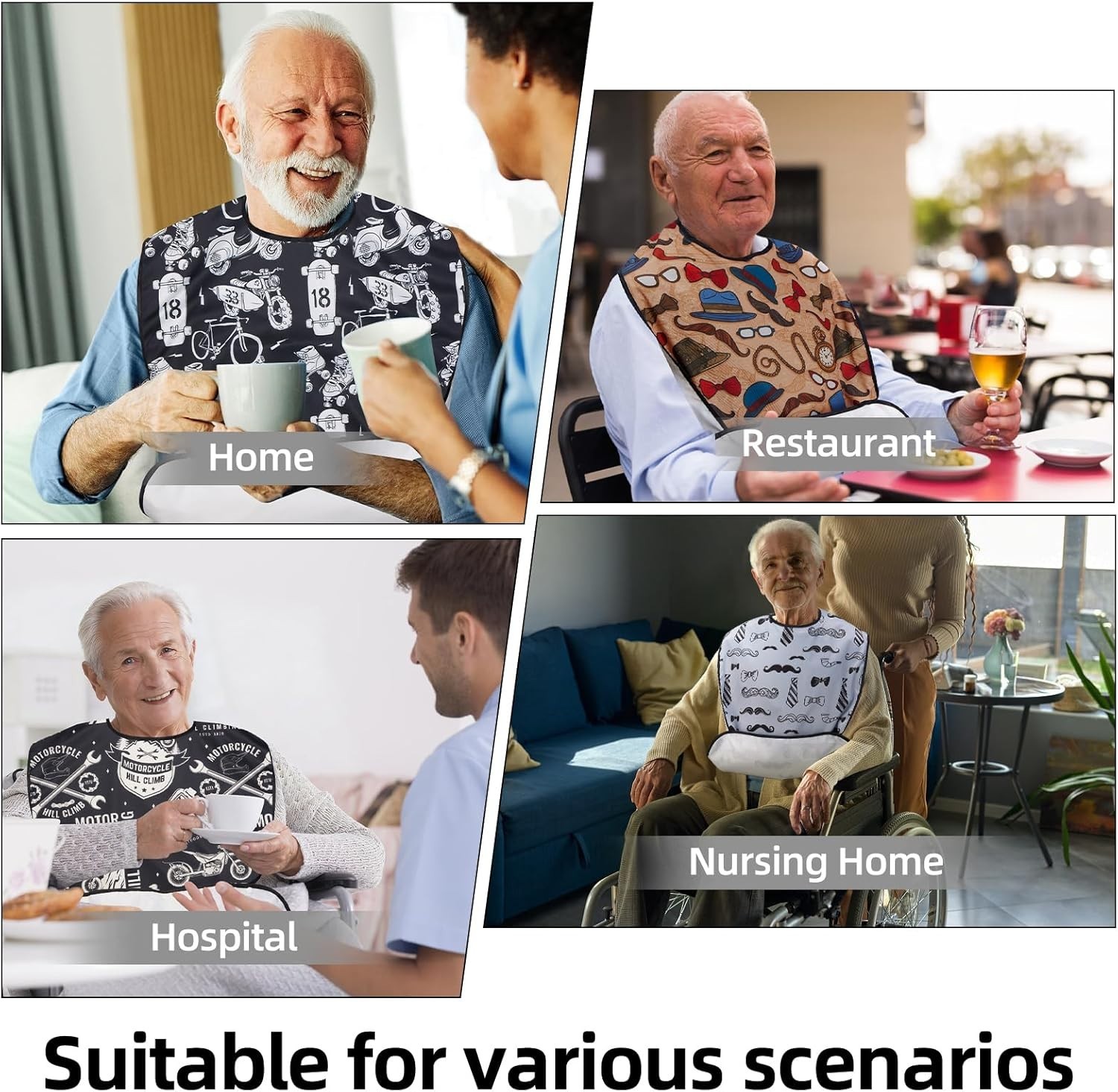 4 Pcs Adult Bibs For Men Washable, Reusable Adult, Gray....