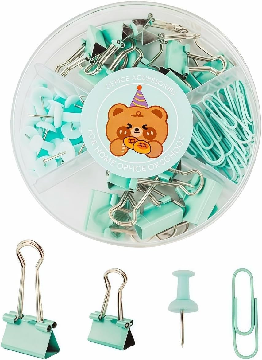 как выглядит 45 Pcs Metal Binder Clips Set with Pushpins,Cute Green Desk Supplies Multi-Size фото