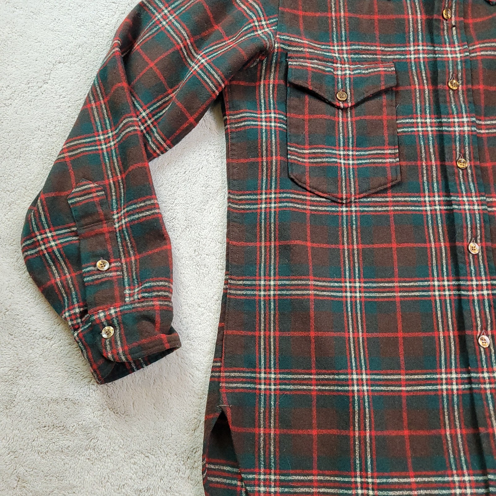как выглядит Vintage Pendleton 100 Wool Flannel Shirt Mens 15.5 Green Red Plaid USA Made фото