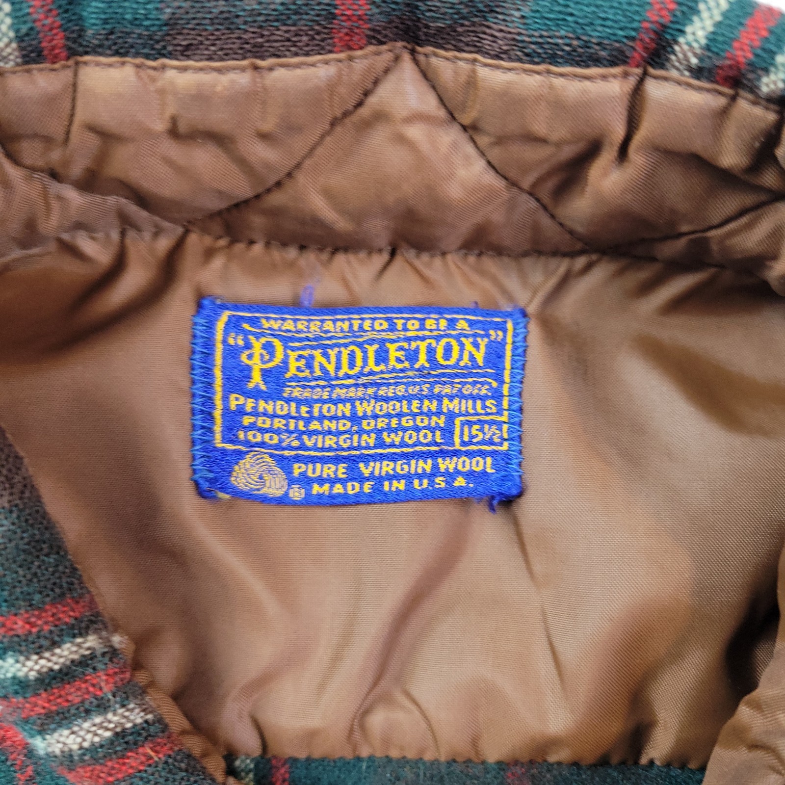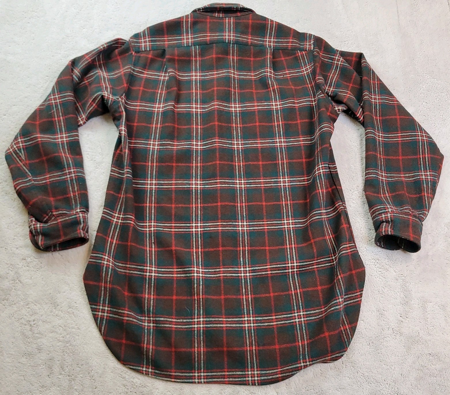 Vintage Pendleton 100 Wool Flannel Shirt Mens 15.5 Green Red Plaid USA Made