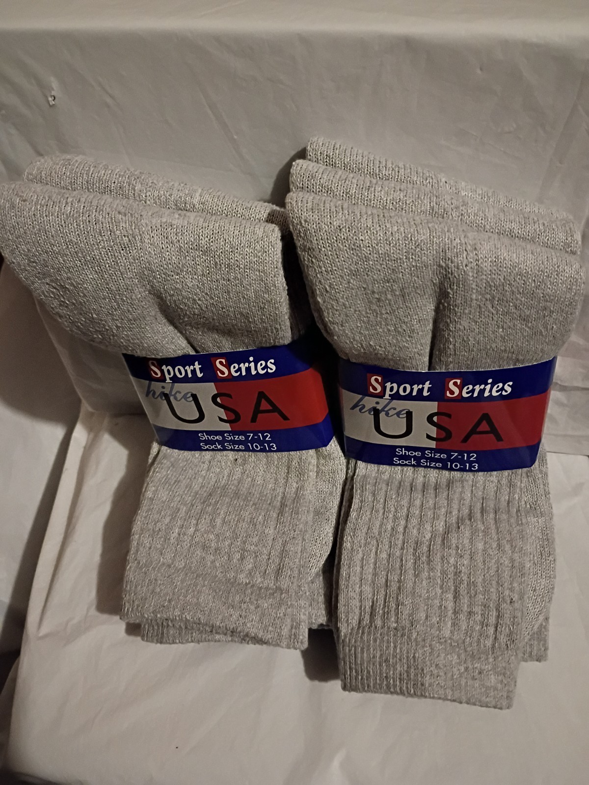 Sport Series USA Crew Socks Gray Men's Size 10-13 Cotton Polyester 2 Pair Pack