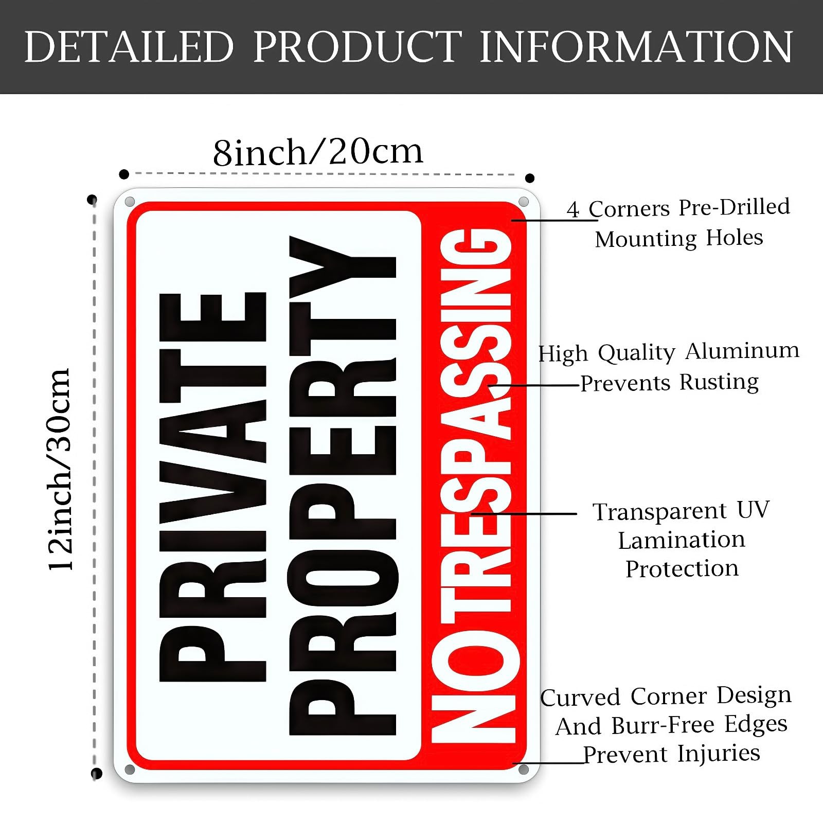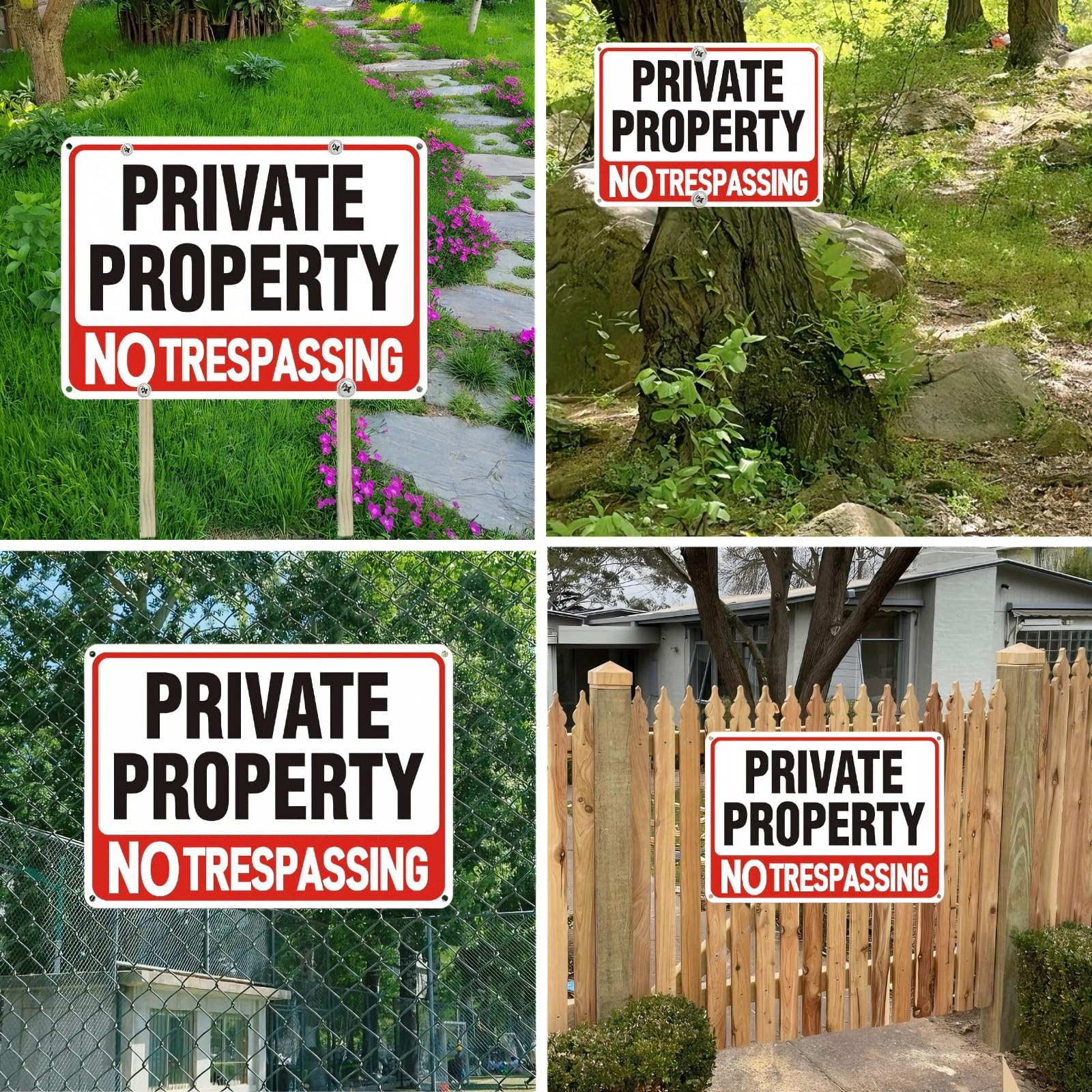 4 Pack Large No Trespassing Signs Private 12x8 Inches, Red, white and black