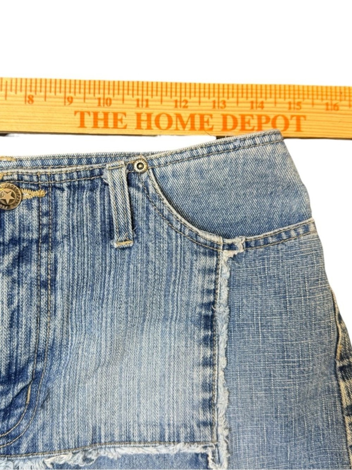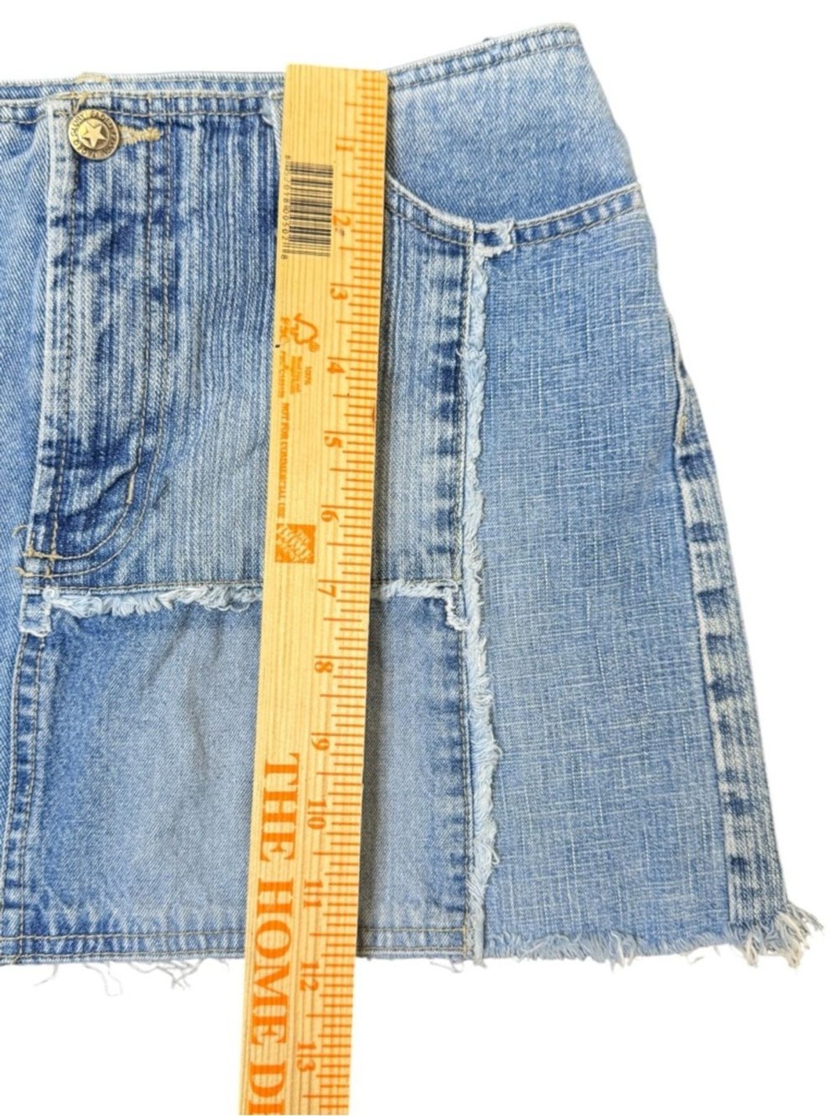 Y2K Faded Glory Light Wash Blue Denim Patchwork Mini Skirt Size 6