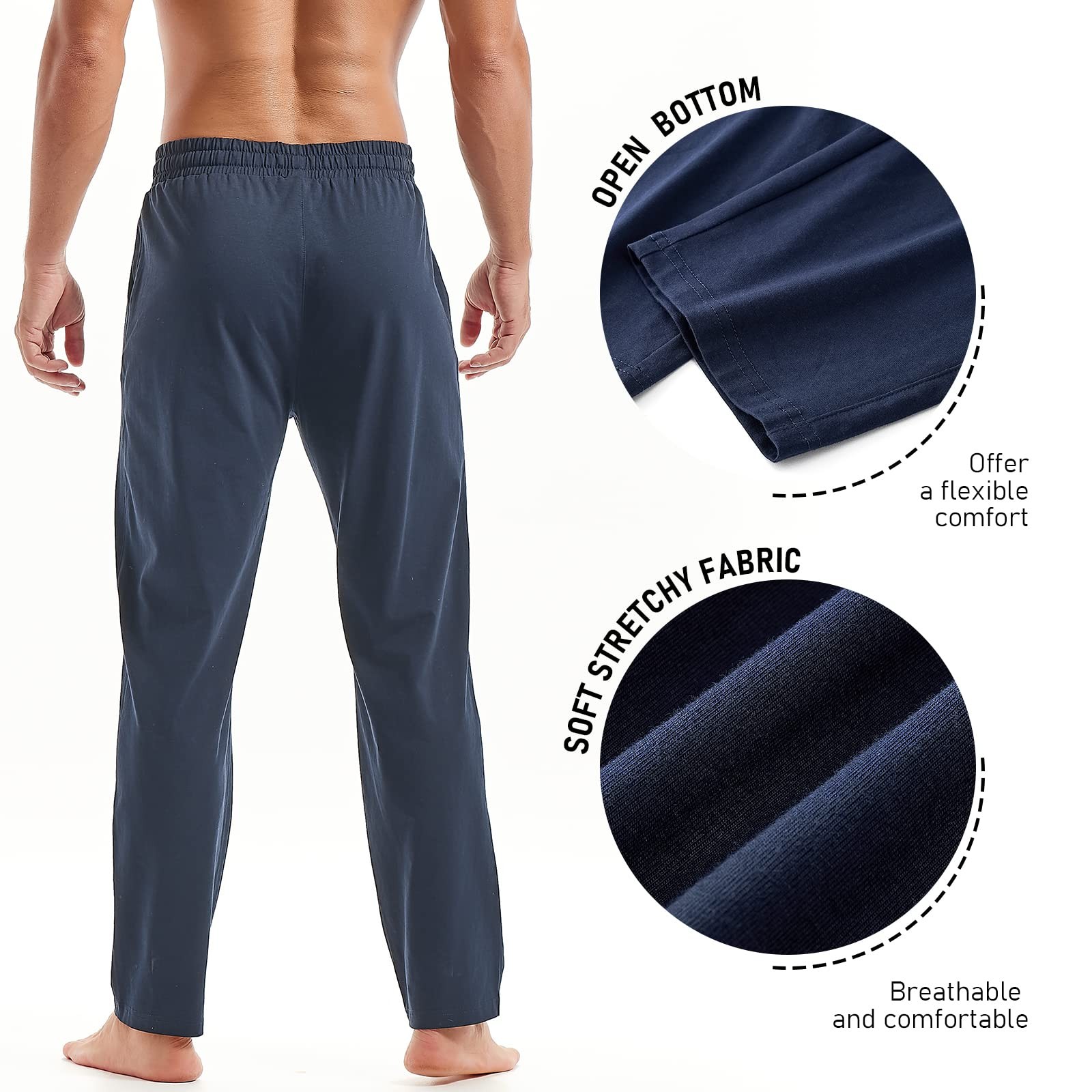 Mens Cotton Yoga Pants Running Workout Lightweight Sweatpants Open Bottom Lou...