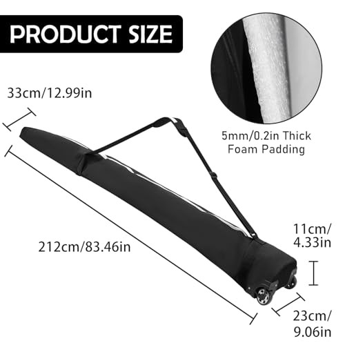 Padded Ski Bag with Wheels, Rolling Wheeled Ski Bag for Air Travel, Store 212cm