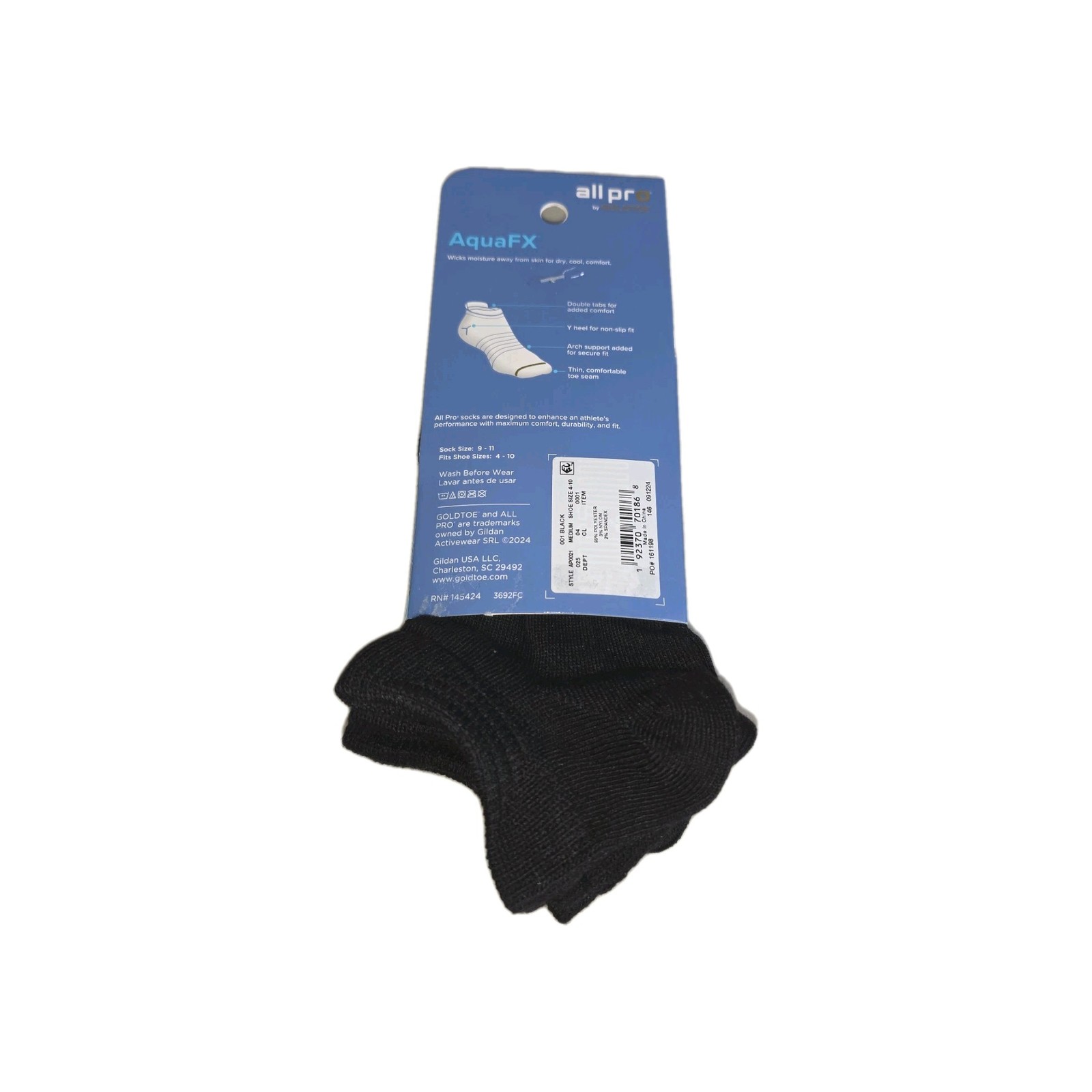 Gold Toe All Pro Womens No Show Socks 6 Pair Black AquaFX Moisture Wicking 9-11