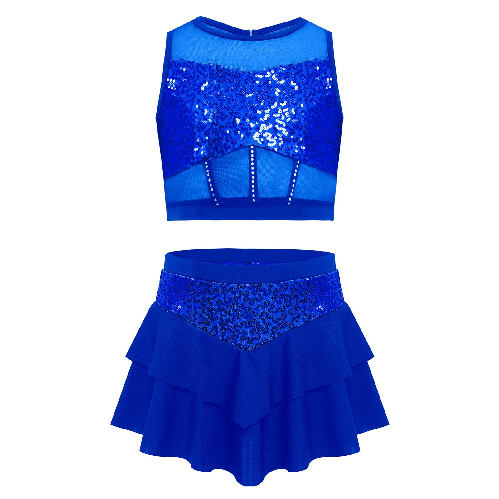 Girls Dancewear Lyrical Ballroom Modern Outfits Athletic Sleeveless Hip Ho Mesh