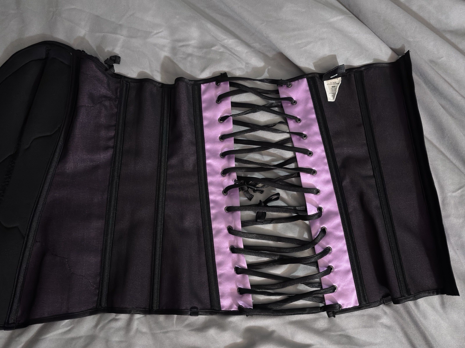 как выглядит FREDERICKS OF HOLLYWOOD Lace Corset Bustier Hook Eye Boned Purple Black фото