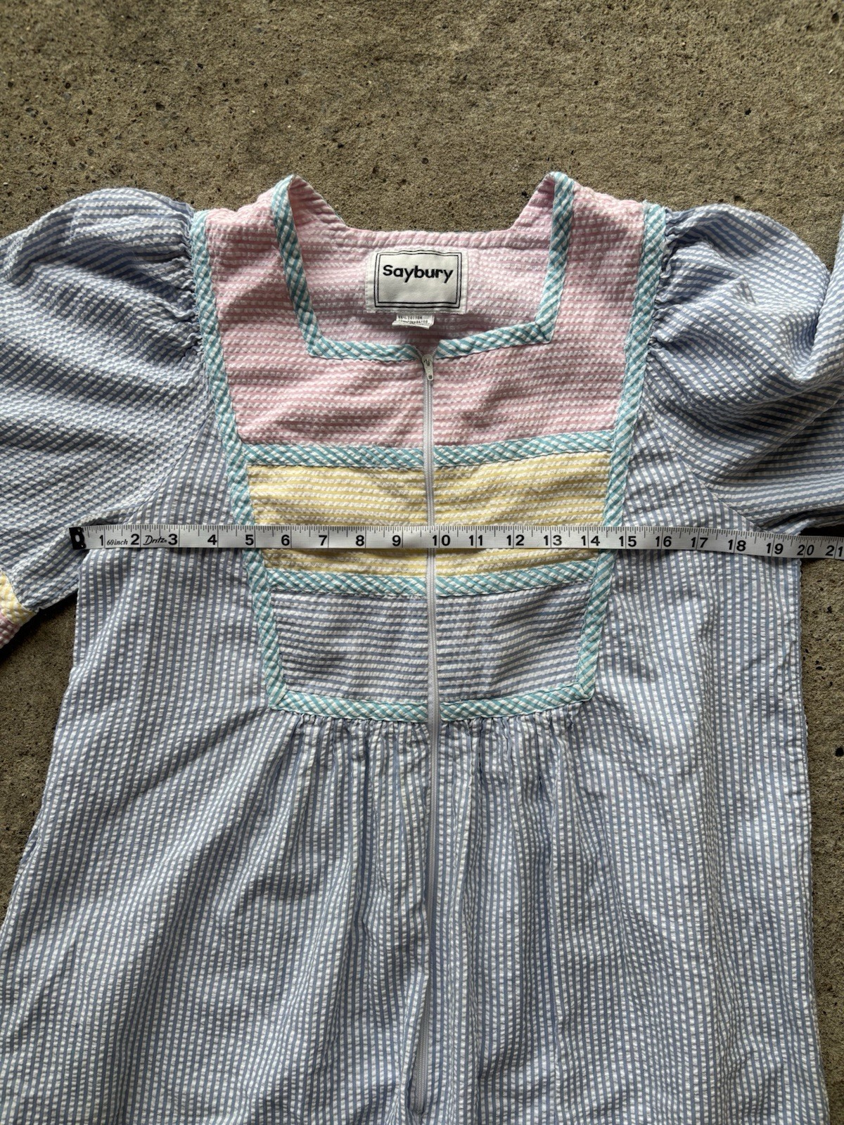 как выглядит Vintage 80S Saybury Pastel Seersucker Stripe Maxi Zip Up House Dress Robe Sz MD фото