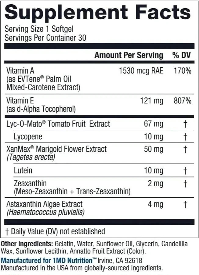 1MD Nutrition Vision MD Eye Vitamin CARMIS - Eye Supplement 30 Softgels USA 5pck