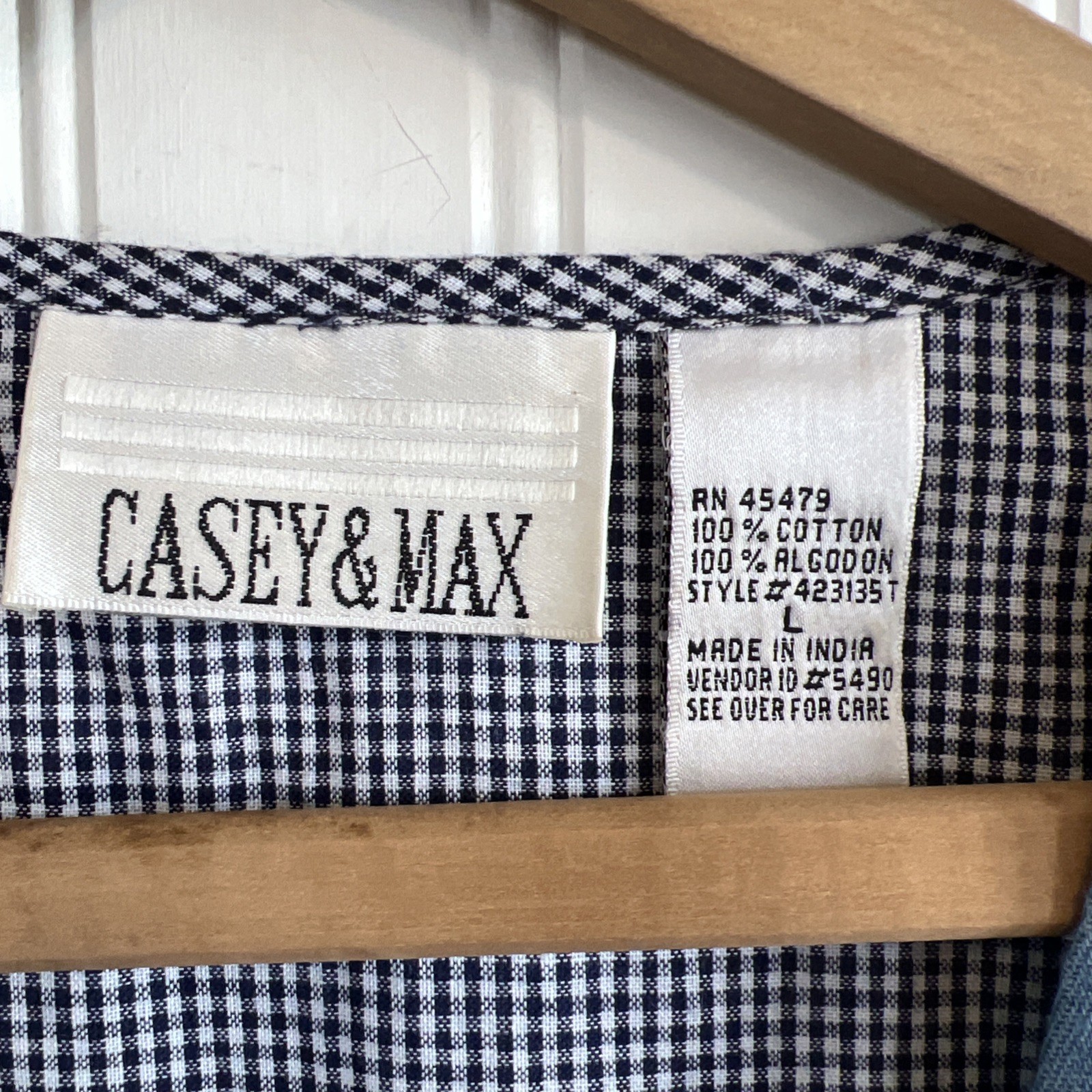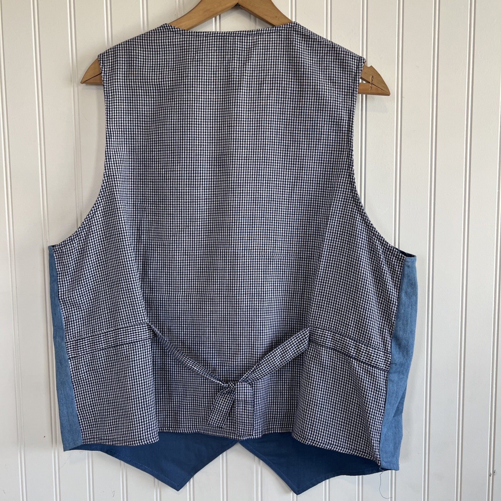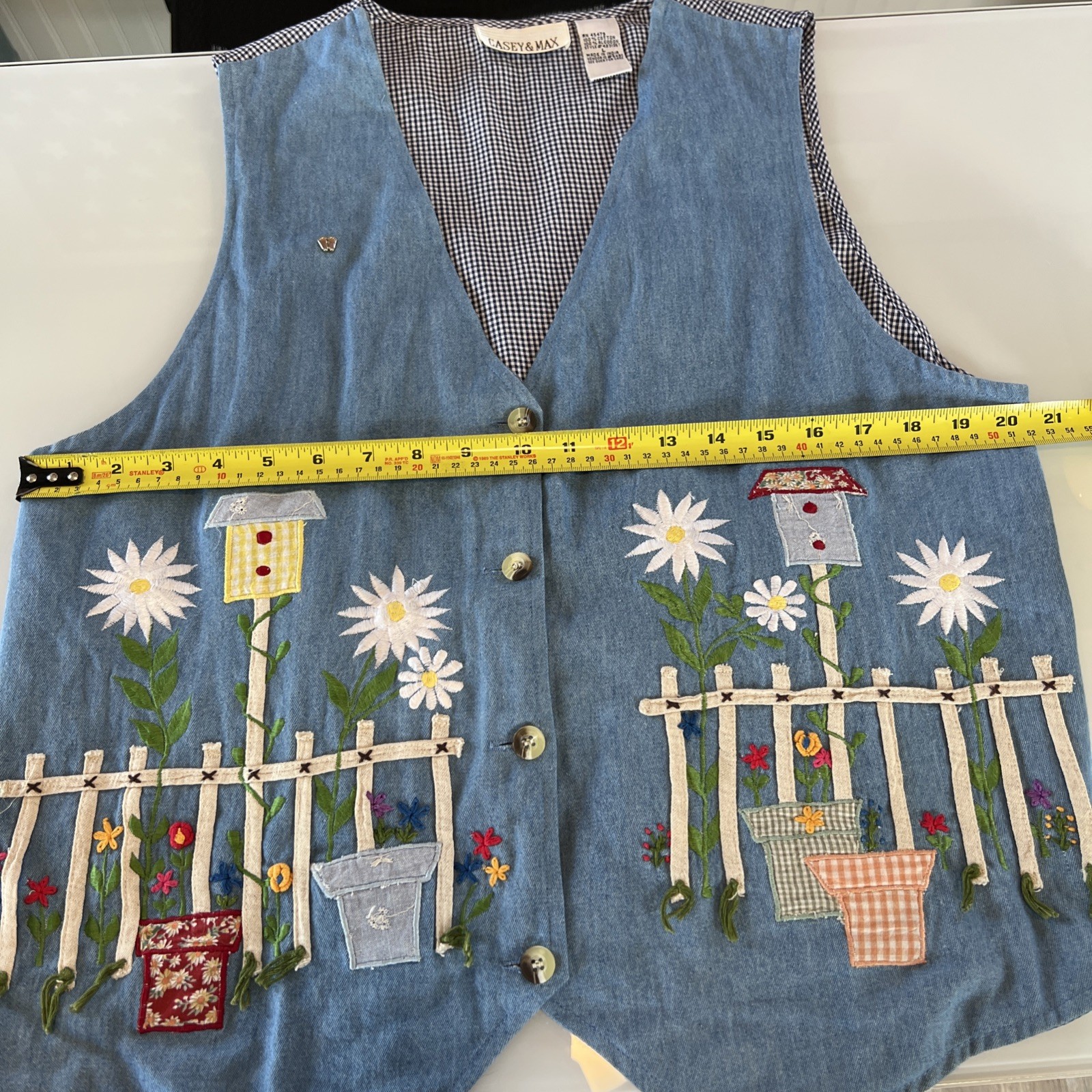 как выглядит Casey Max Vest Womens Large Blue Denim Floral Garden Gingham Floral Spring фото