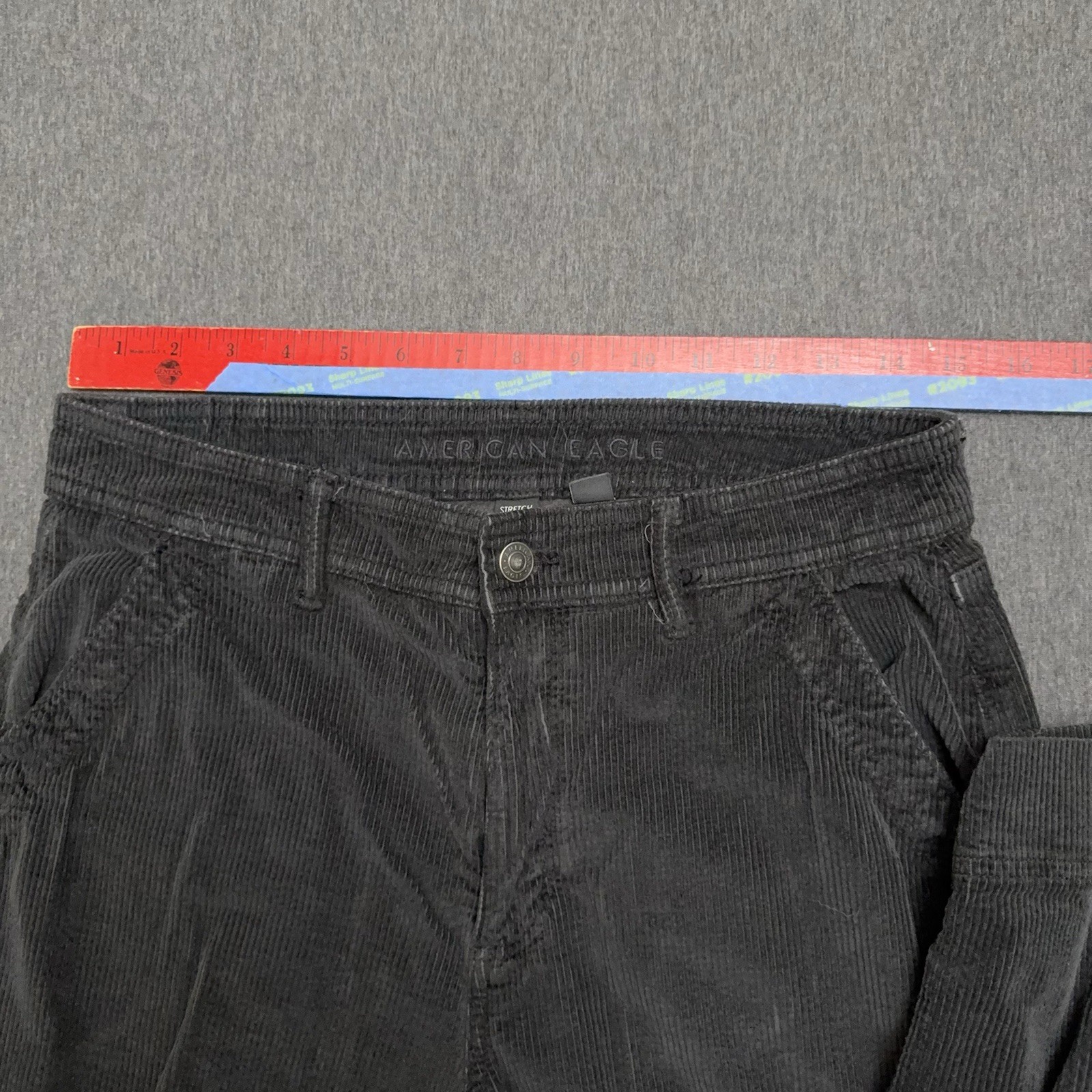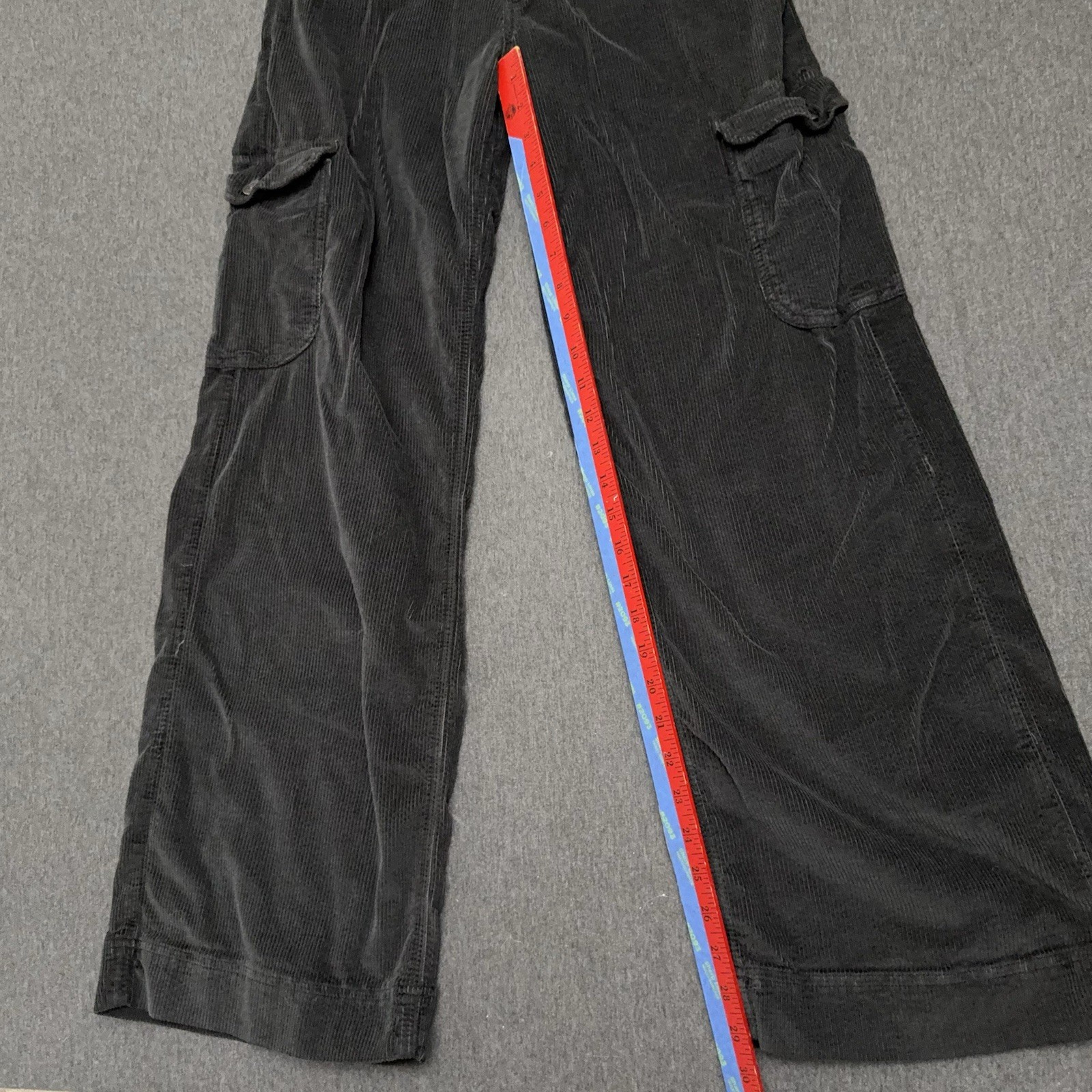 как выглядит American Eagle Super High Rise Baggy Wide Leg Jeans Women 8 Black Corduroy Cargo фото