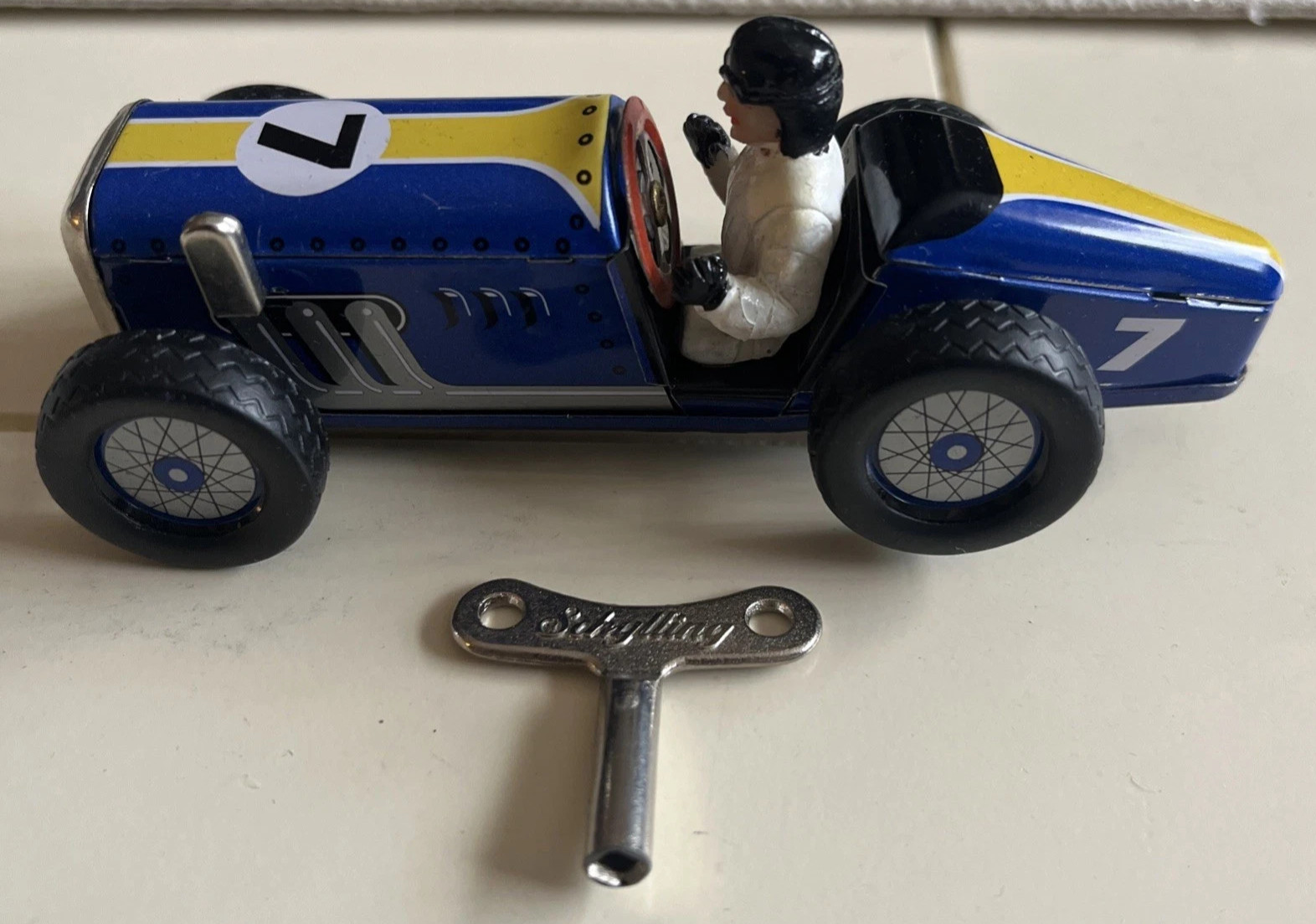 Schylling Speedway Racer Classic Wind-Up Tin Car Driver Blue 7 A20