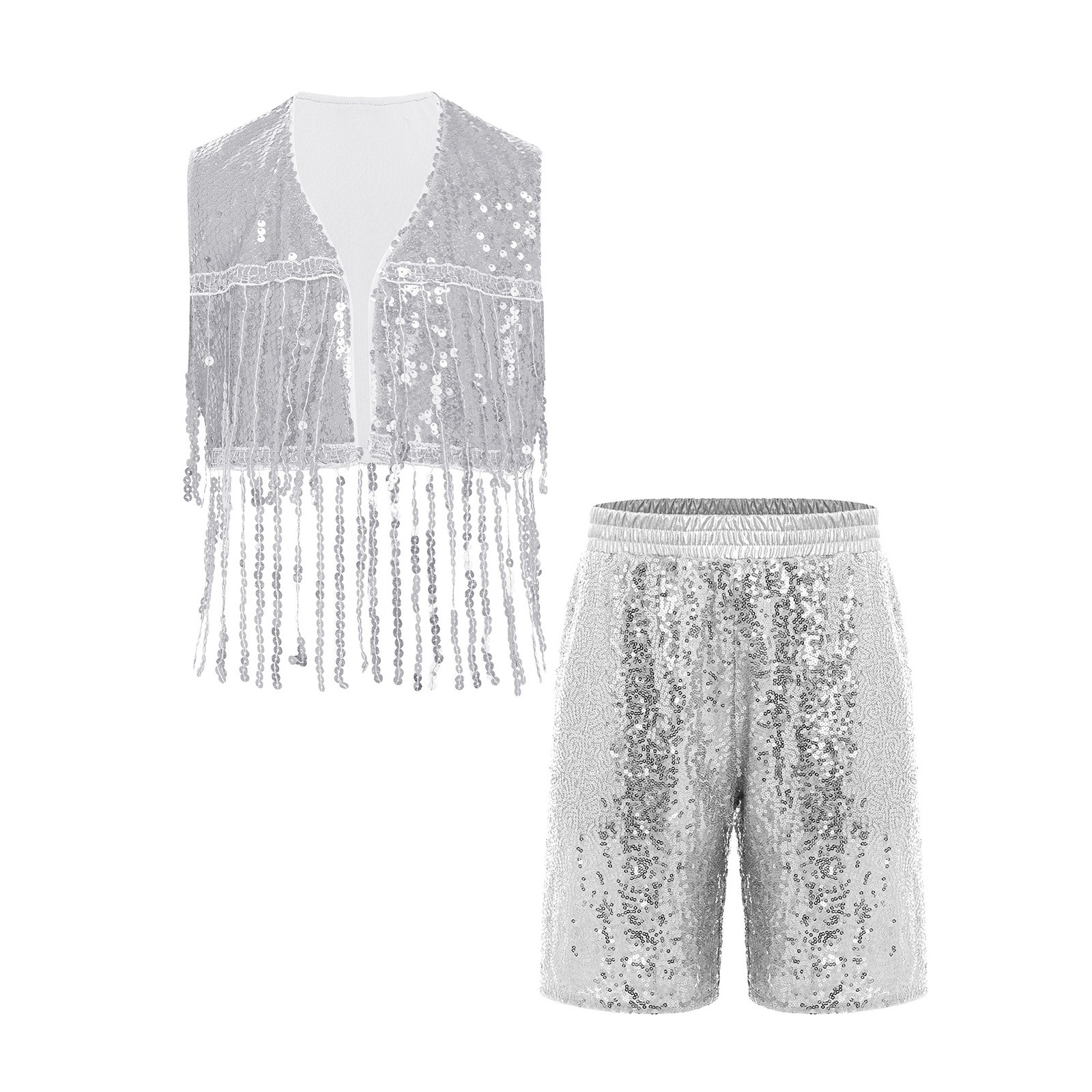 Kids Shorts Set Samba Jazz Dance Party Sequin Vest Shiny Outfits Tiered Tassel