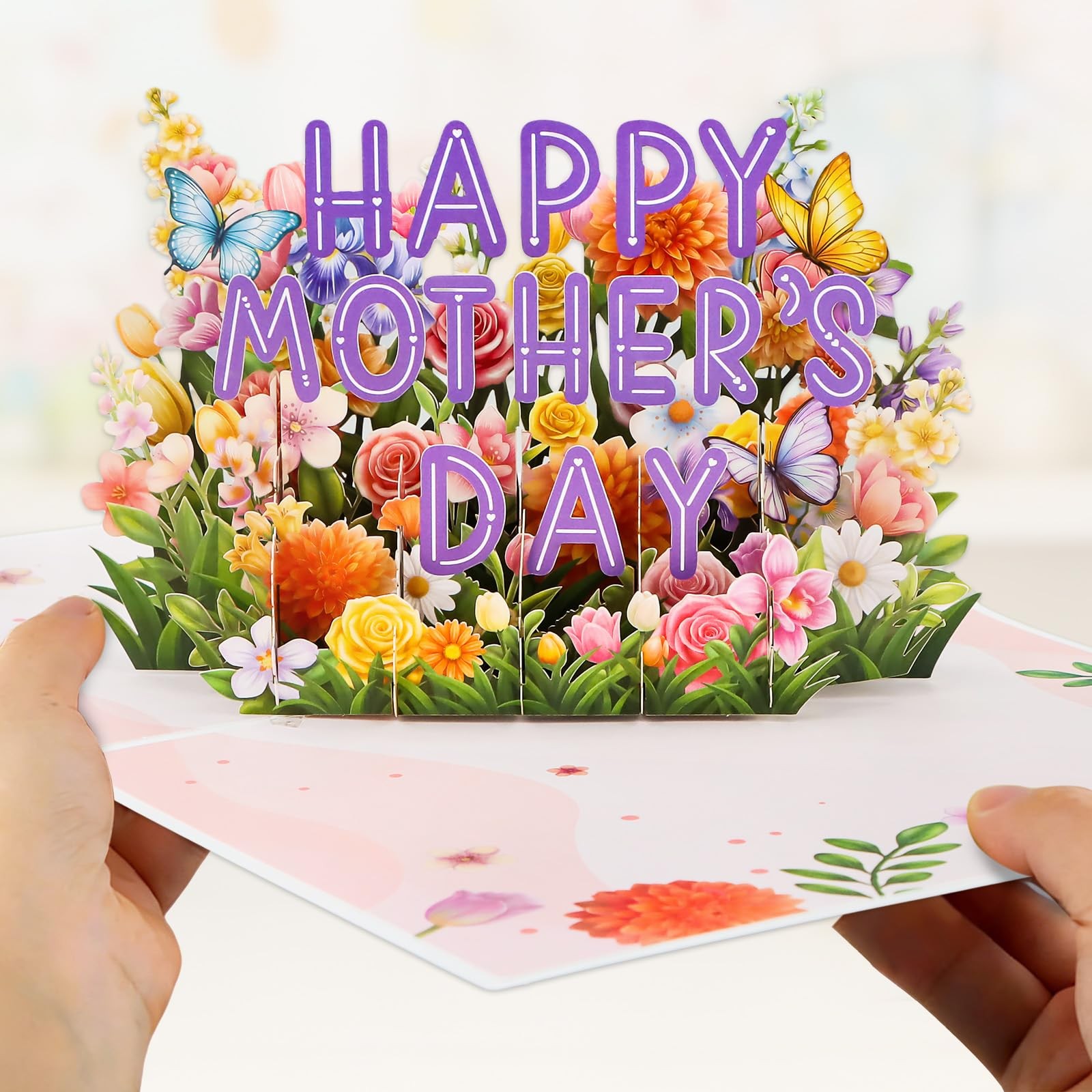 Mothers Day Card Pop Up Large 8x6 4Layer 3D Flower Garden Butterfly Center...